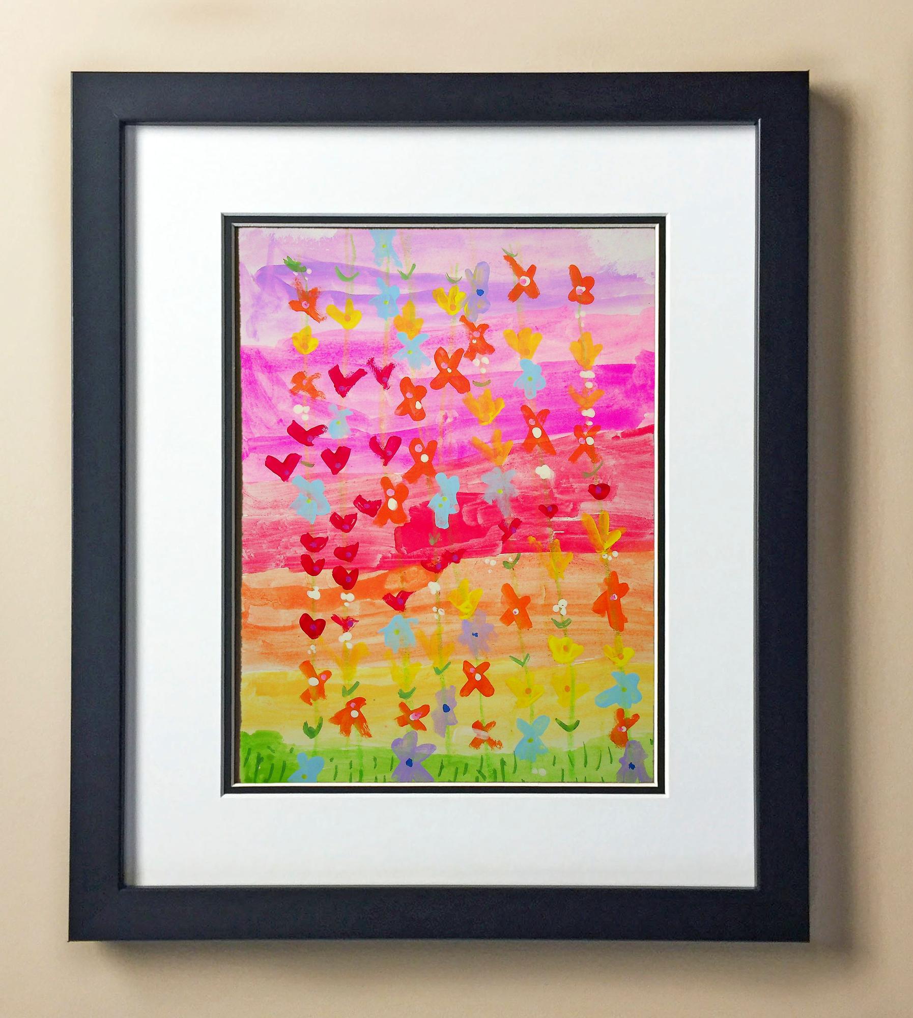 Included with the purchase is the Students Artwork, Frame, double matboard, shatter proof plexiglass, and a ready to hang backerboard with turnbuttons