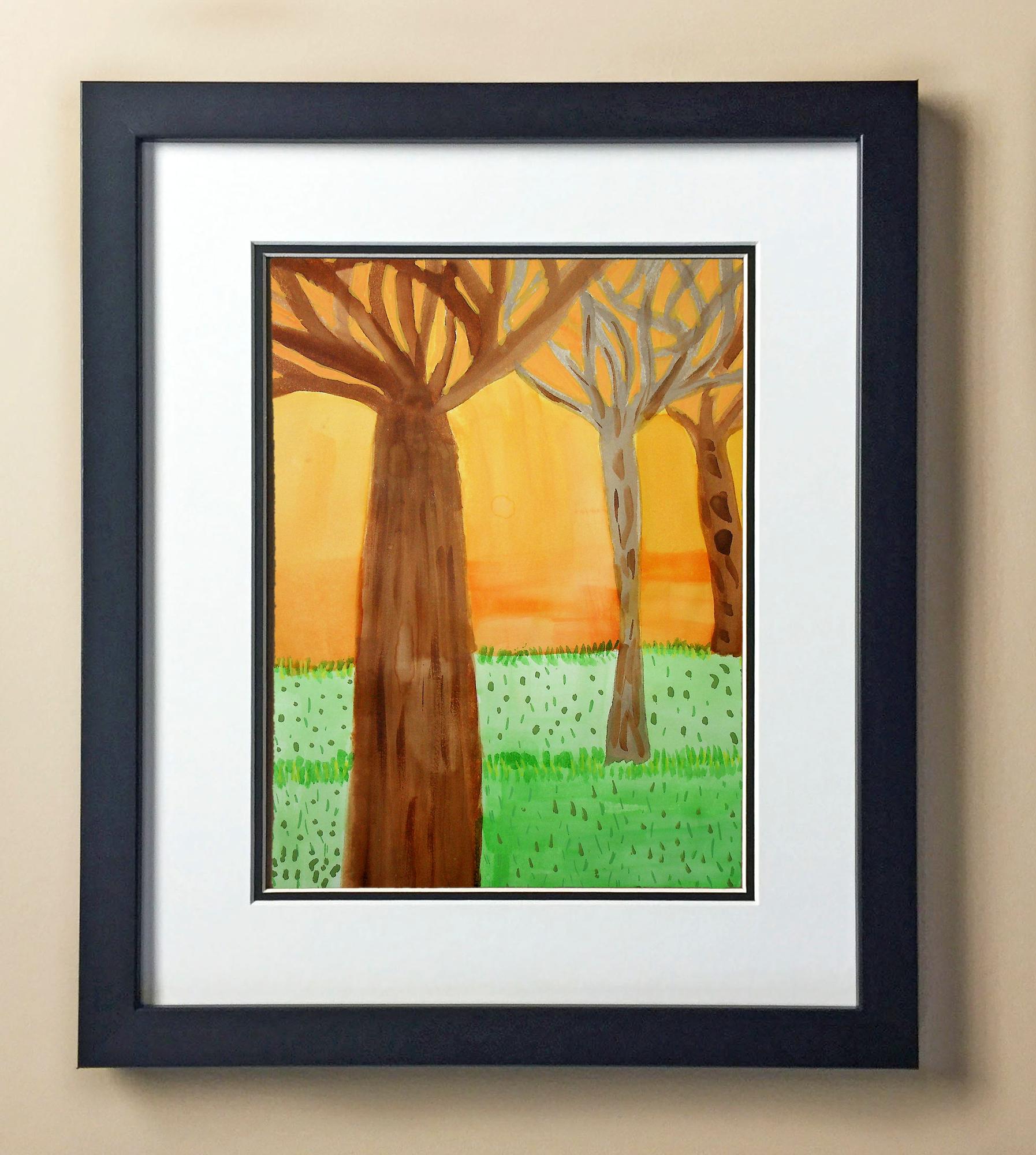 Included with the purchase is the Students Artwork, Frame, double matboard, shatter proof plexiglass, and a ready to hang backerboard with turnbuttons