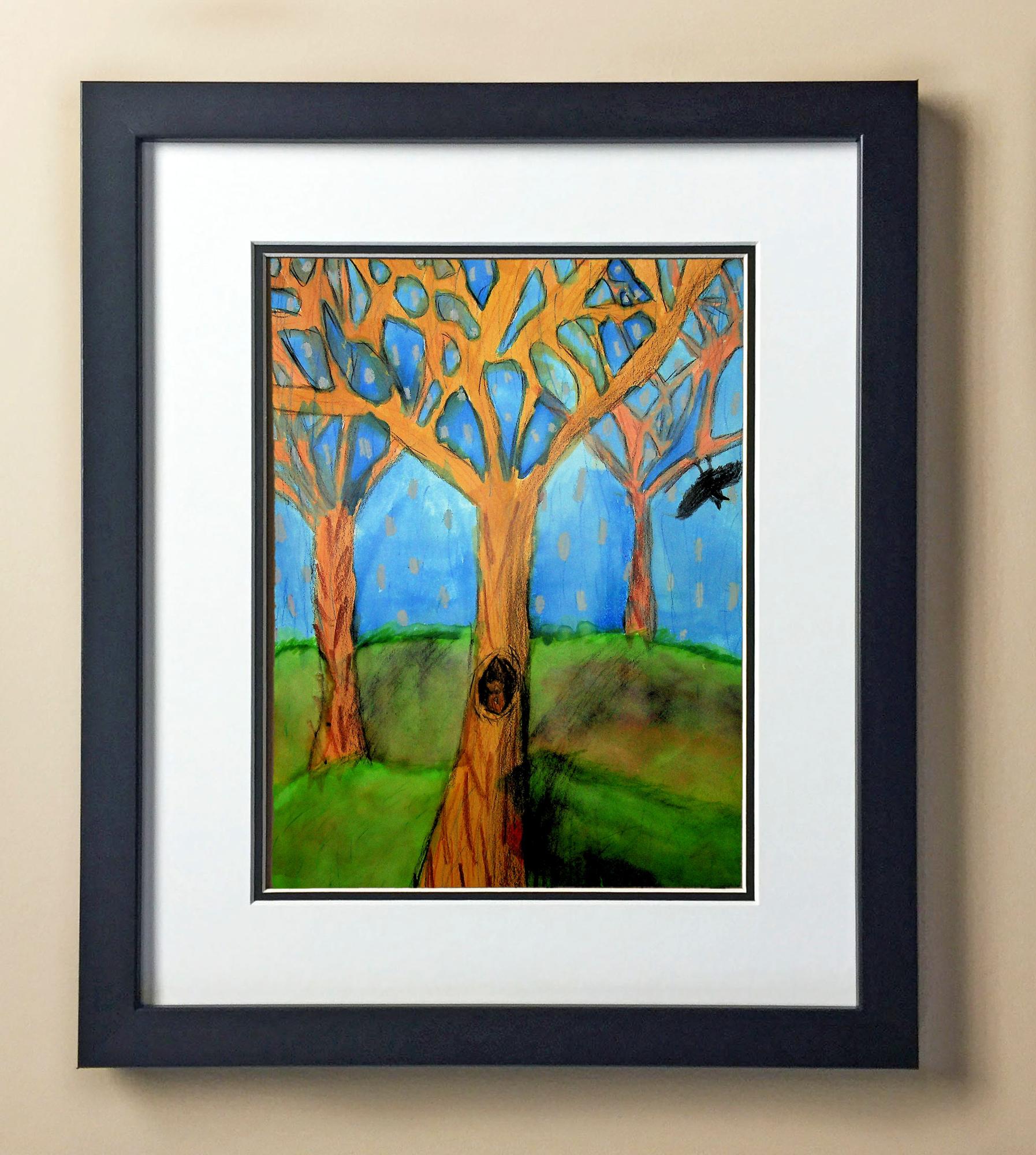 Included with the purchase is the Students Artwork, Frame, double matboard, shatter proof plexiglass, and a ready to hang backerboard with turnbuttons