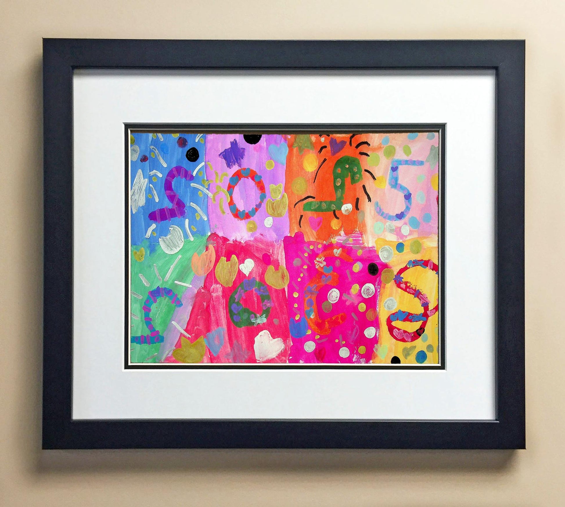 Included with the purchase is the Students Artwork, Frame, double matboard, shatter proof plexiglass, and a ready to hang backerboard with turnbuttons