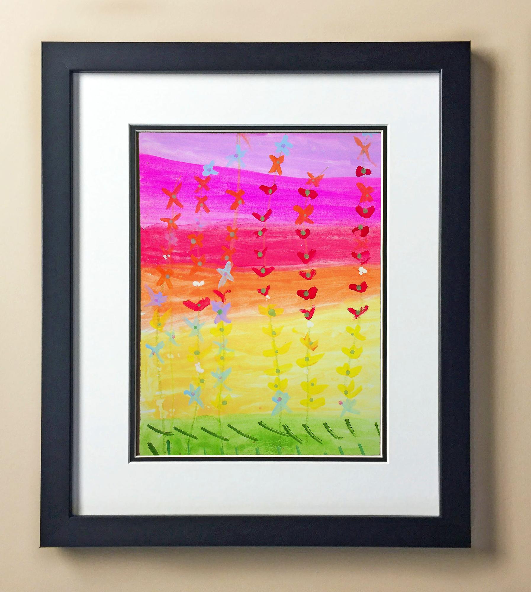 Included with the purchase is the Students Artwork, Frame, double matboard, shatter proof plexiglass, and a ready to hang backerboard with turnbuttons