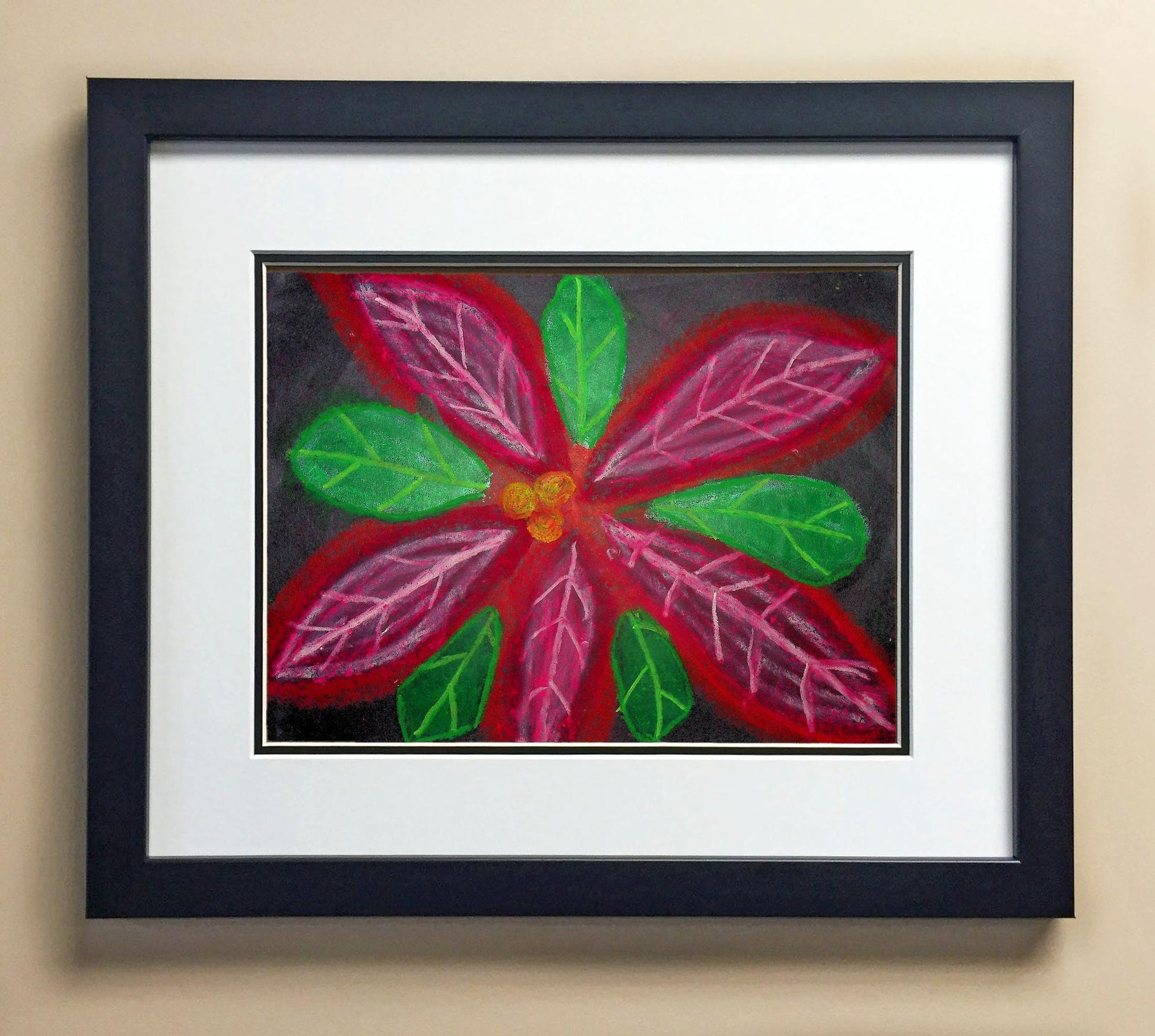 Included with the purchase is the Students Artwork, Frame, double matboard, shatter proof plexiglass, and a ready to hang backerboard with turnbuttons
