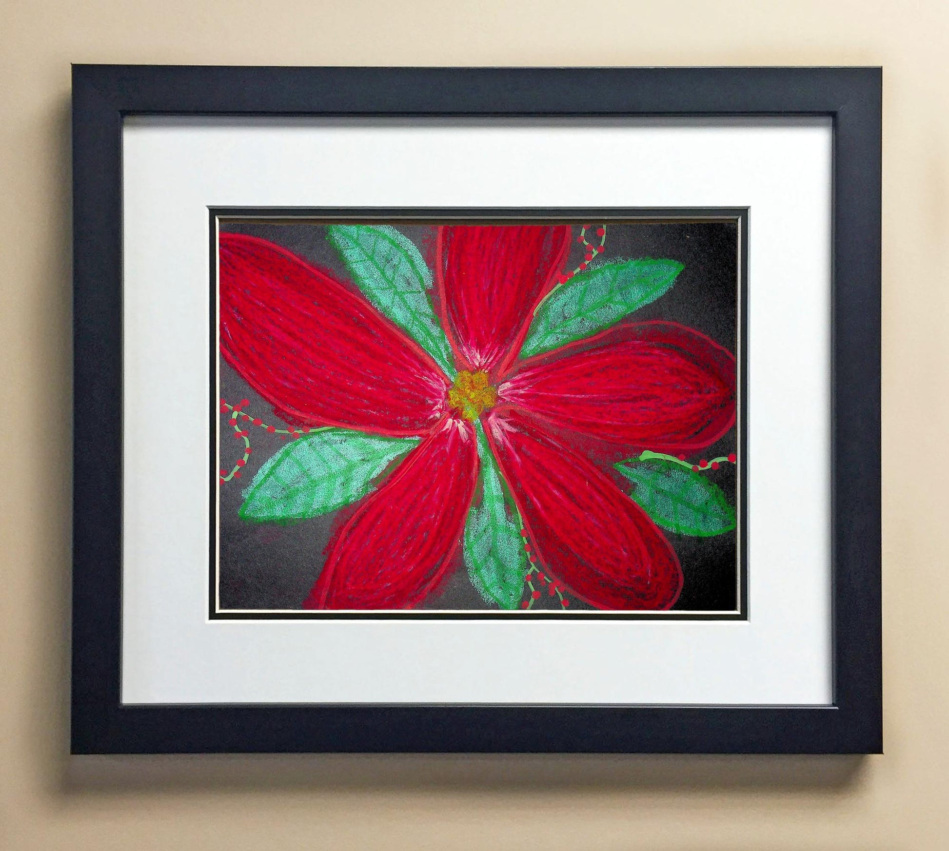 Included with the purchase is the Students Artwork, Frame, double matboard, shatter proof plexiglass, and a ready to hang backerboard with turnbuttons