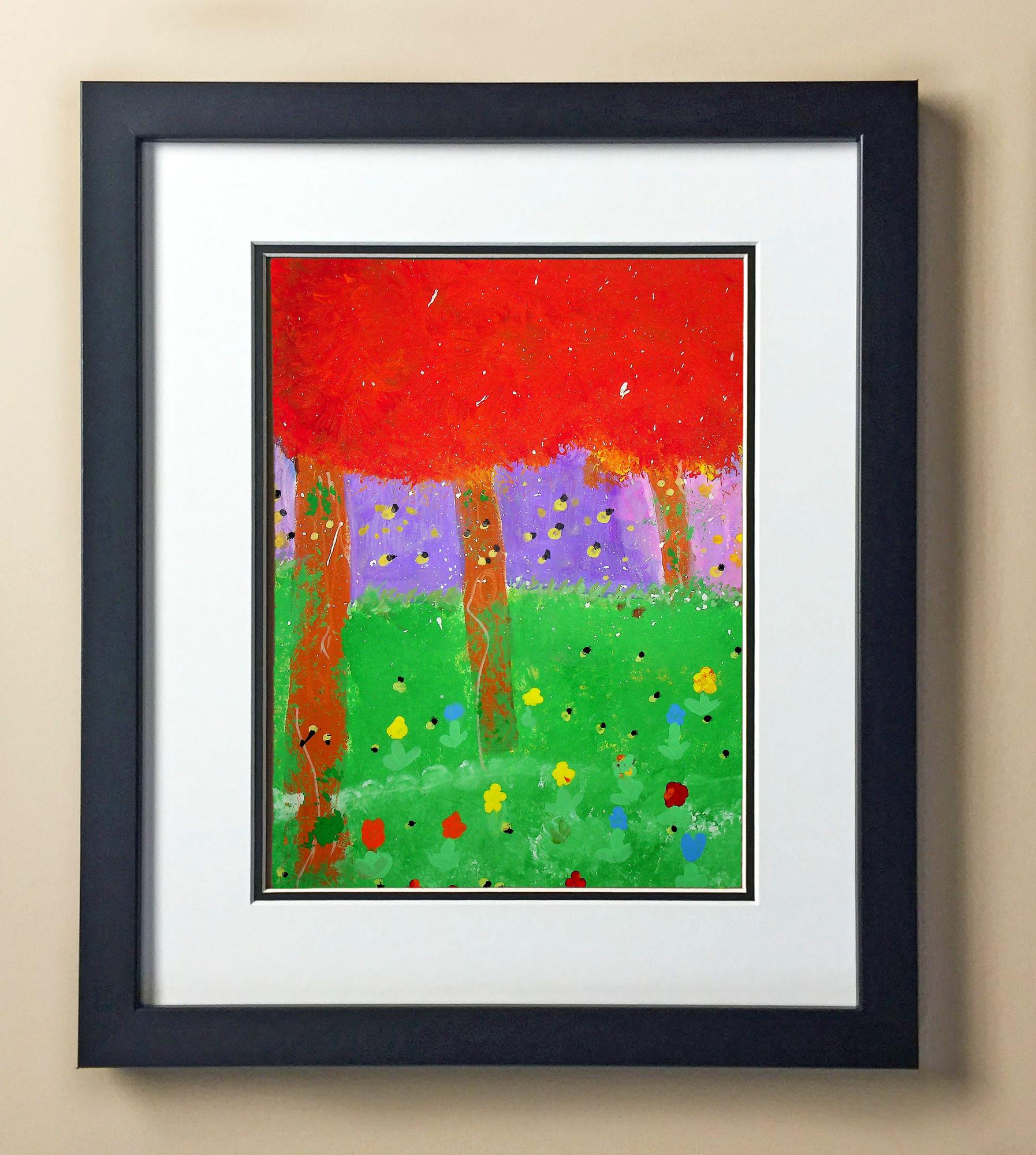 Included with the purchase is the Students Artwork, Frame, double matboard, shatter proof plexiglass, and a ready to hang backerboard with turnbuttons