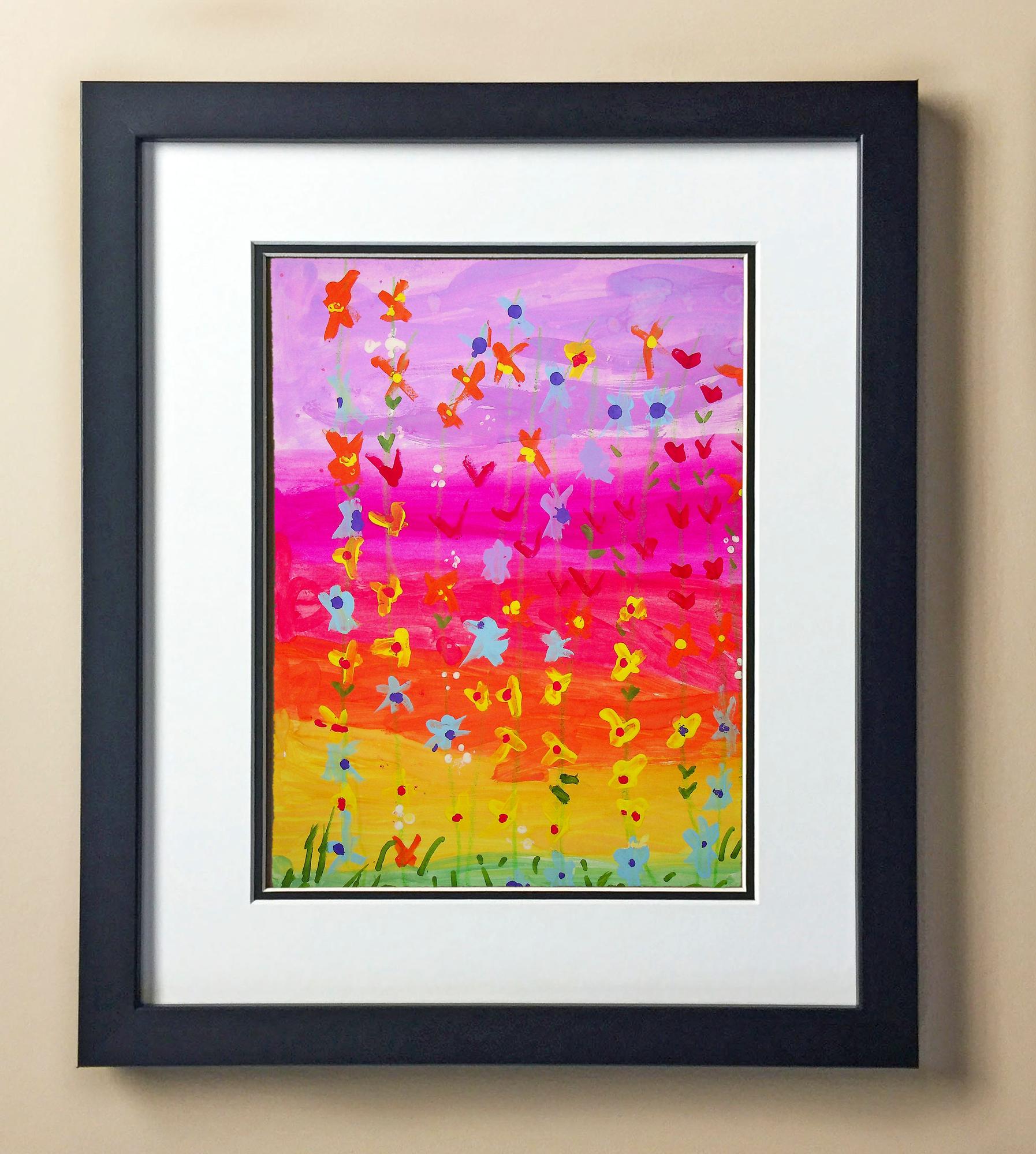 Included with the purchase is the Students Artwork, Frame, double matboard, shatter proof plexiglass, and a ready to hang backerboard with turnbuttons
