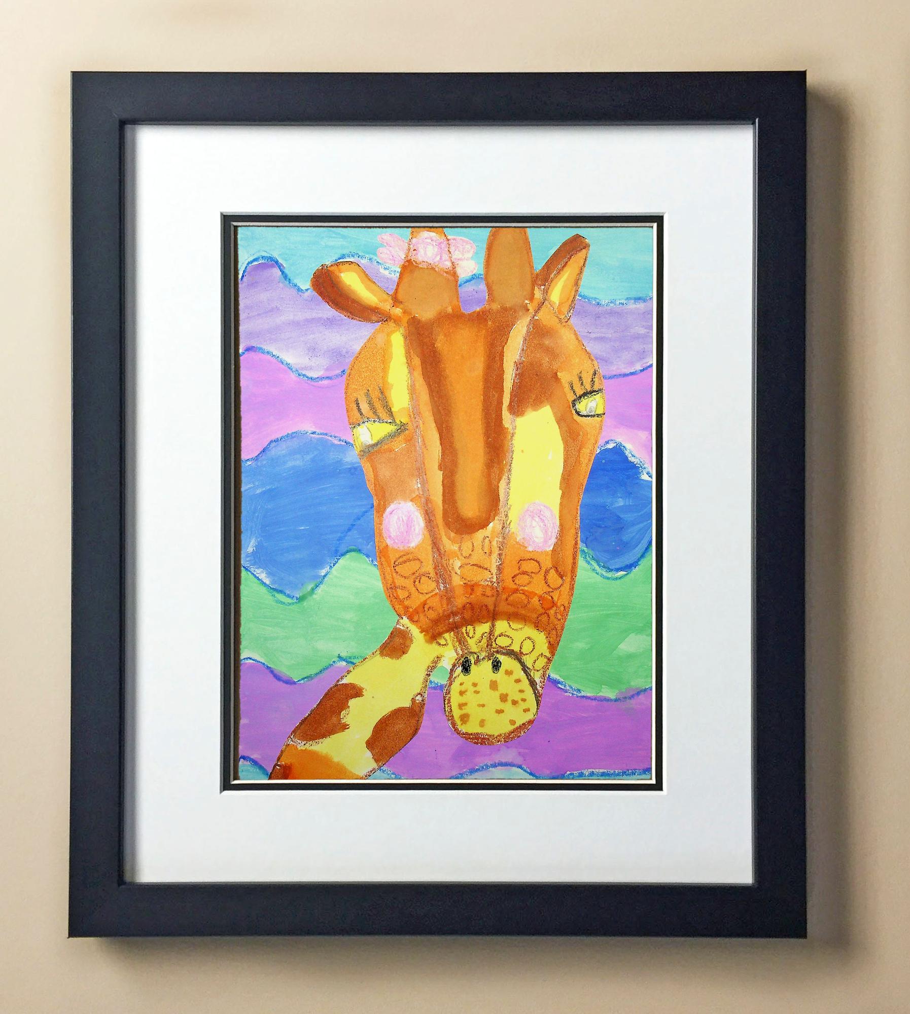 Included with the purchase is the Students Artwork, Frame, double matboard, shatter proof plexiglass, and a ready to hang backerboard with turnbuttons