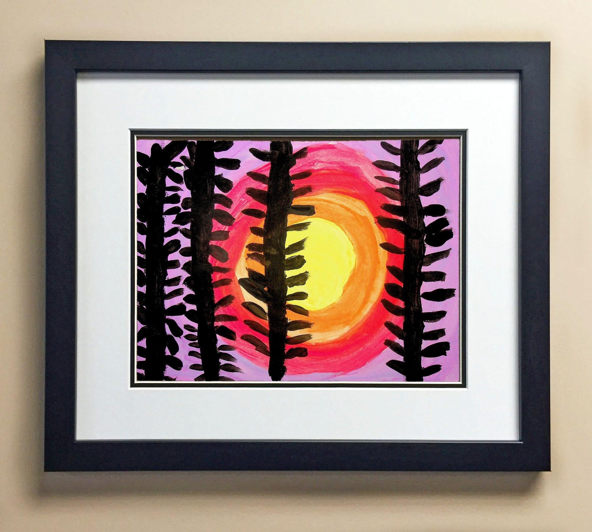 Included with the purchase is the Students Artwork, Frame, double matboard, shatter proof plexiglass, and a ready to hang backerboard with turnbuttons