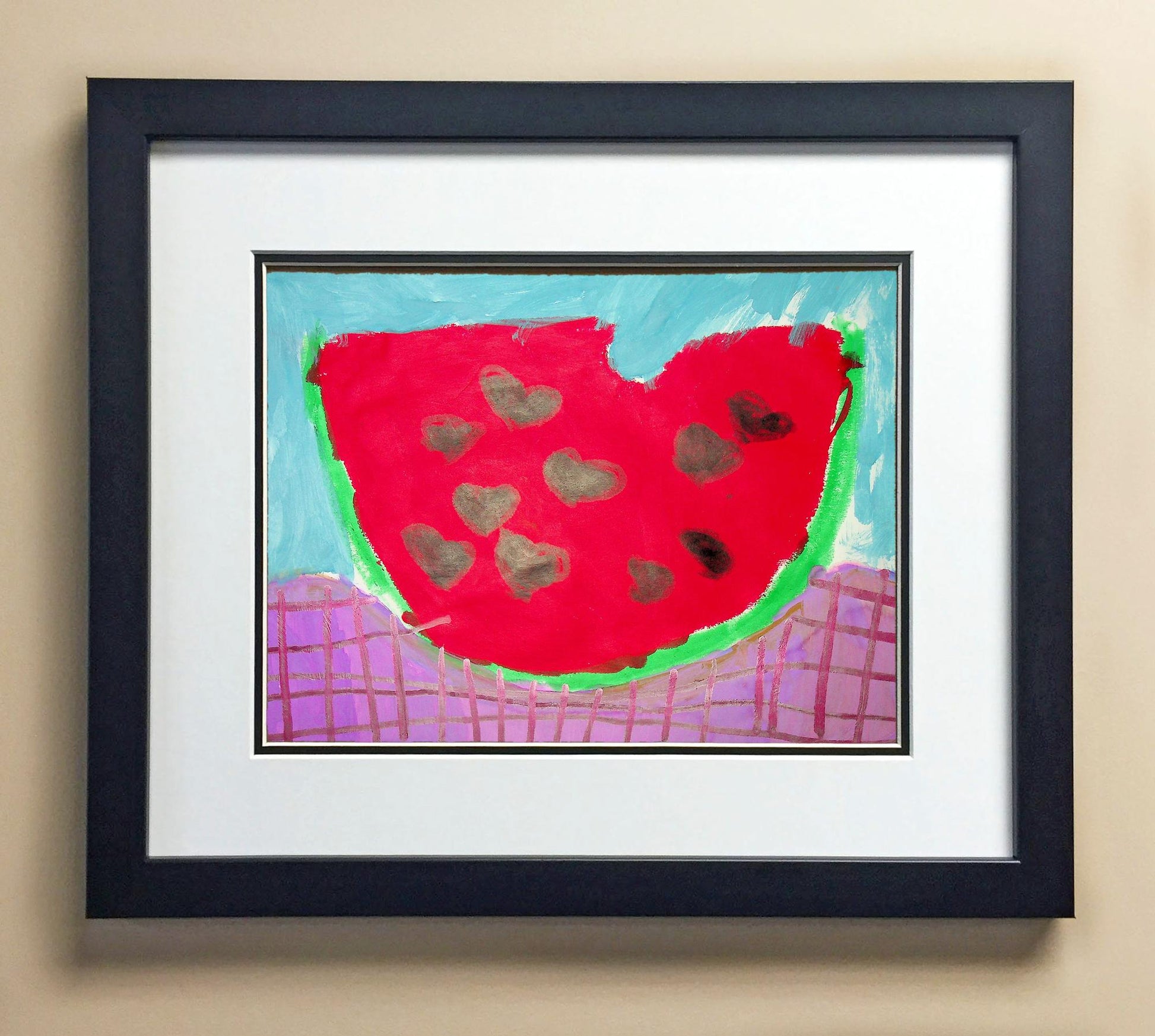 Included with the purchase is the Students Artwork, Frame, double matboard, shatter proof plexiglass, and a ready to hang backerboard with turnbuttons