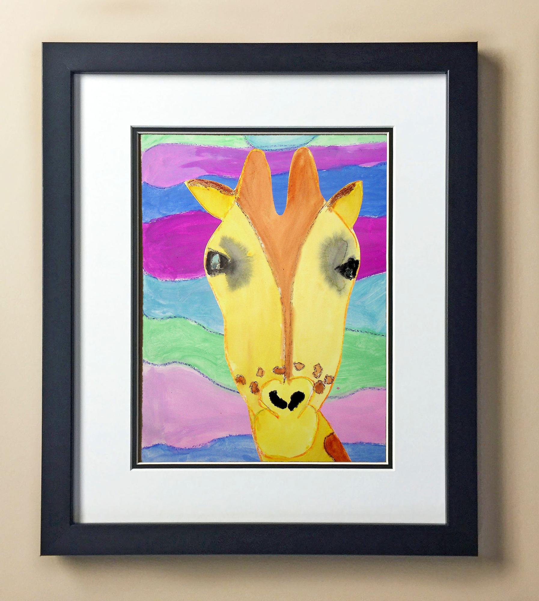 Included with the purchase is the Students Artwork, Frame, double matboard, shatter proof plexiglass, and a ready to hang backerboard with turnbuttons