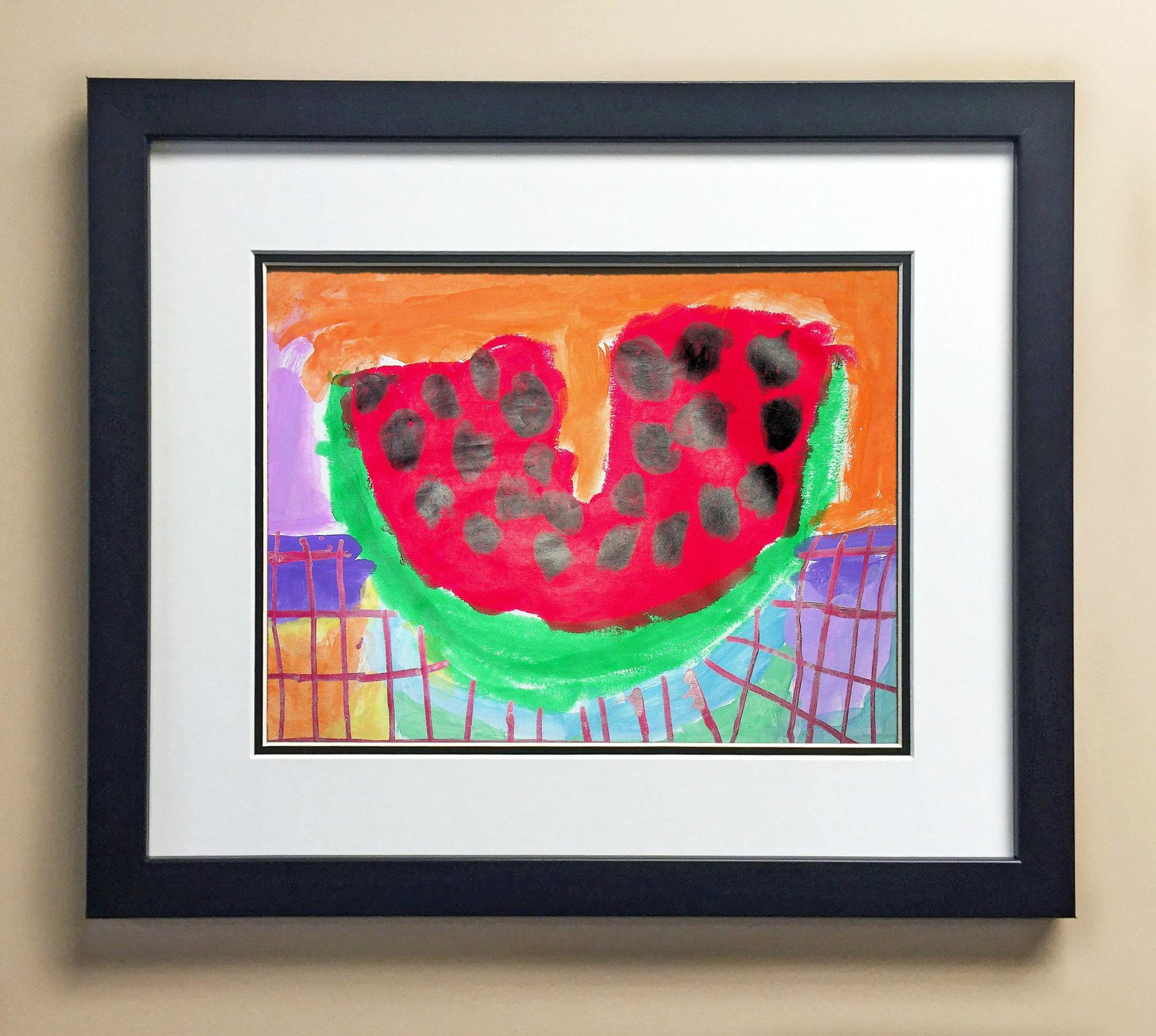 Included with the purchase is the Students Artwork, Frame, double matboard, shatter proof plexiglass, and a ready to hang backerboard with turnbuttons