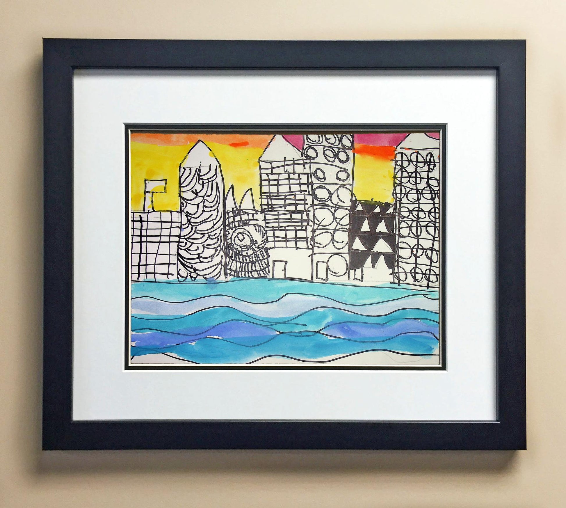 Included with the purchase is the Students Artwork, Frame, double matboard, shatter proof plexiglass, and a ready to hang backerboard with turnbuttons