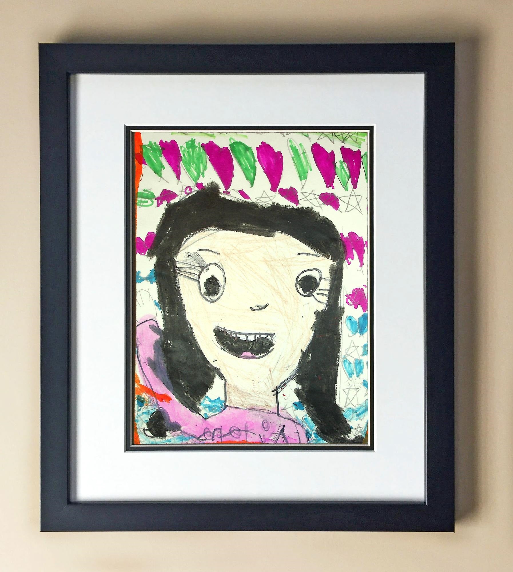 Included with the purchase is the Students Artwork, Frame, double matboard, shatter proof plexiglass, and a ready to hang backerboard with turnbuttons