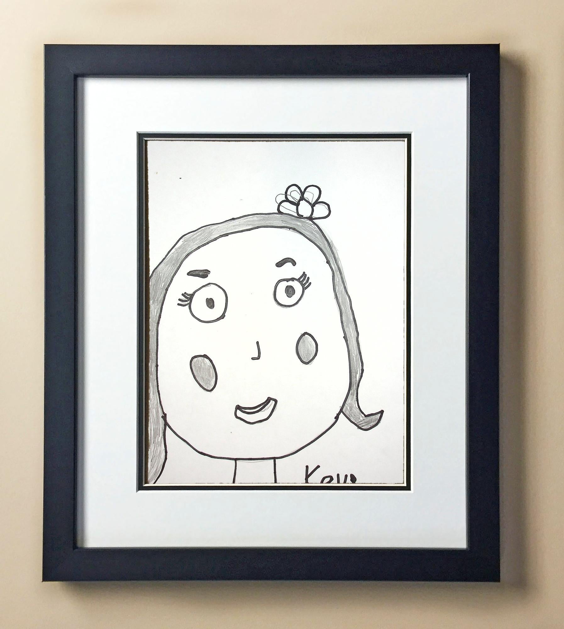 Included with the purchase is the Students Artwork, Frame, double matboard, shatter proof plexiglass, and a ready to hang backerboard with turnbuttons