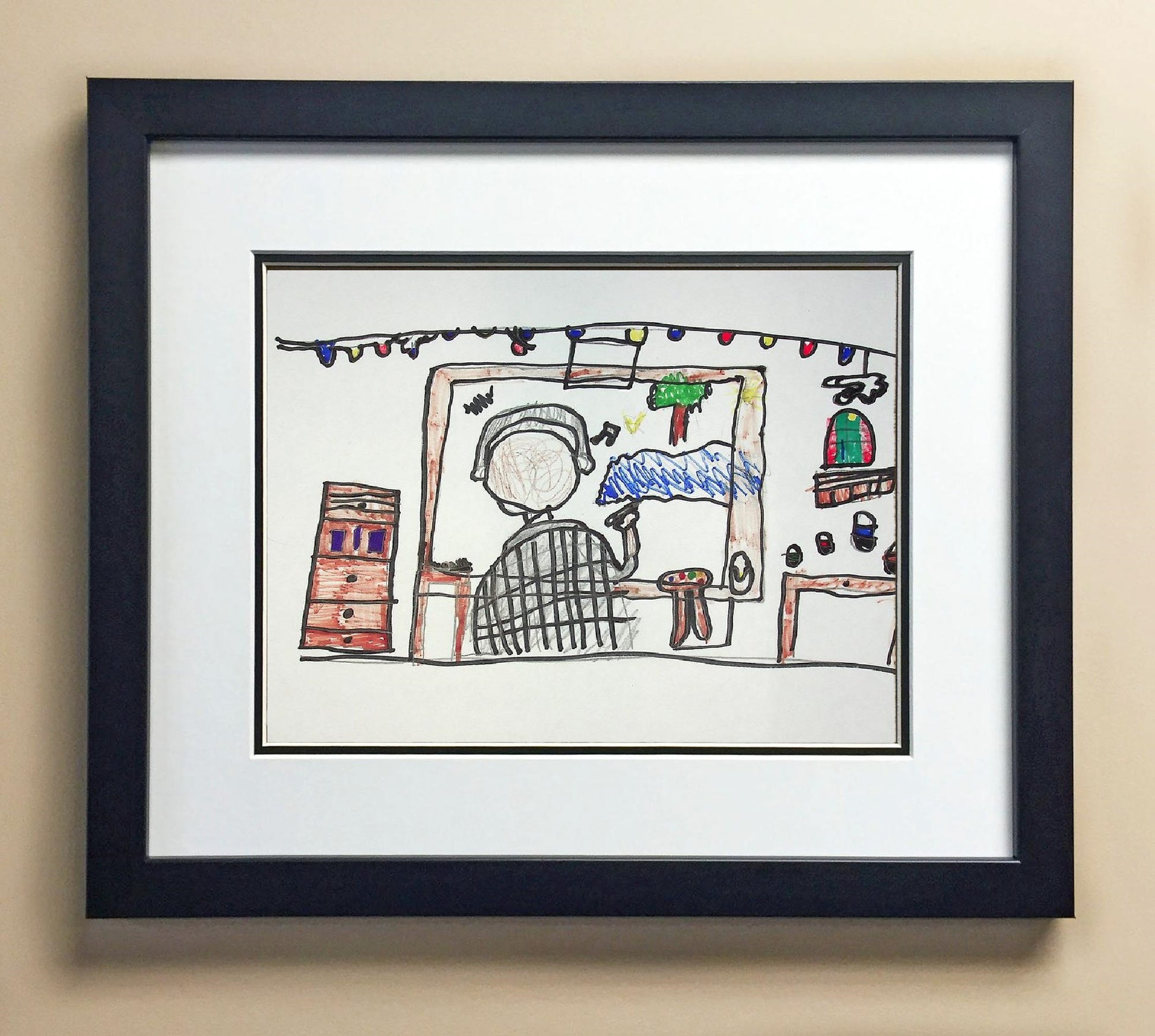 Included with the purchase is the Students Artwork, Frame, double matboard, shatter proof plexiglass, and a ready to hang backerboard with turnbuttons