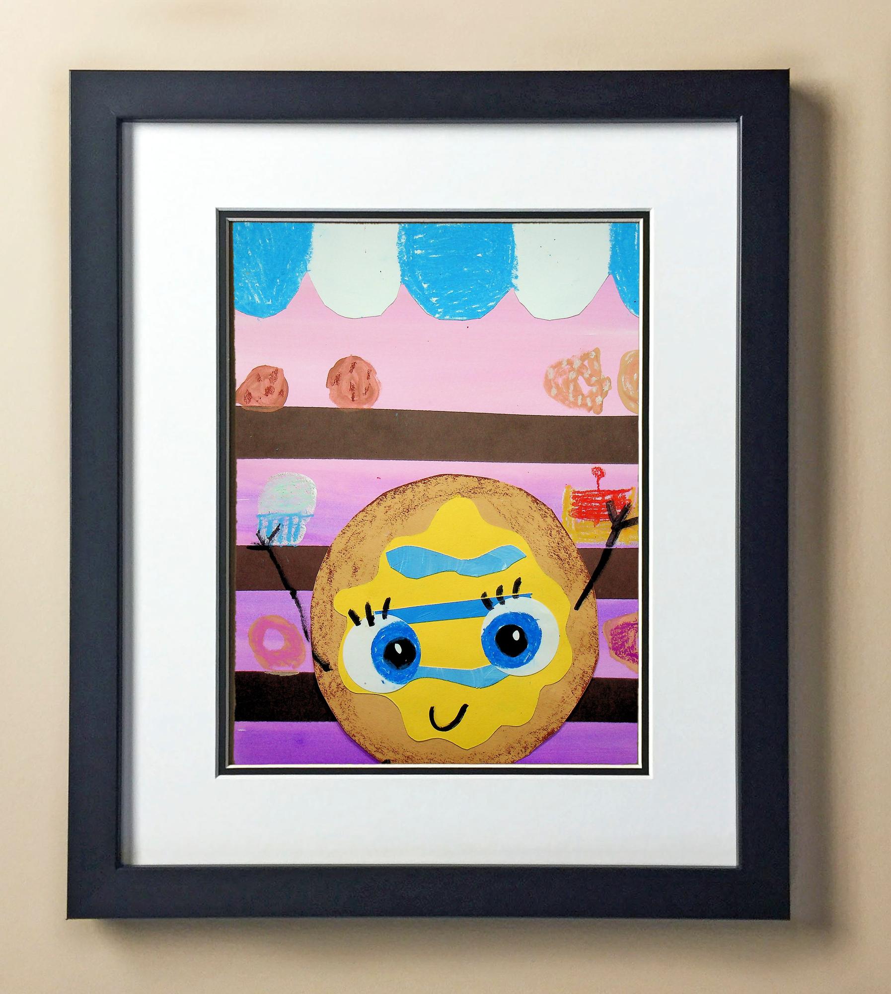 Included with the purchase is the Students Artwork, Frame, double matboard, shatter proof plexiglass, and a ready to hang backerboard with turnbuttons