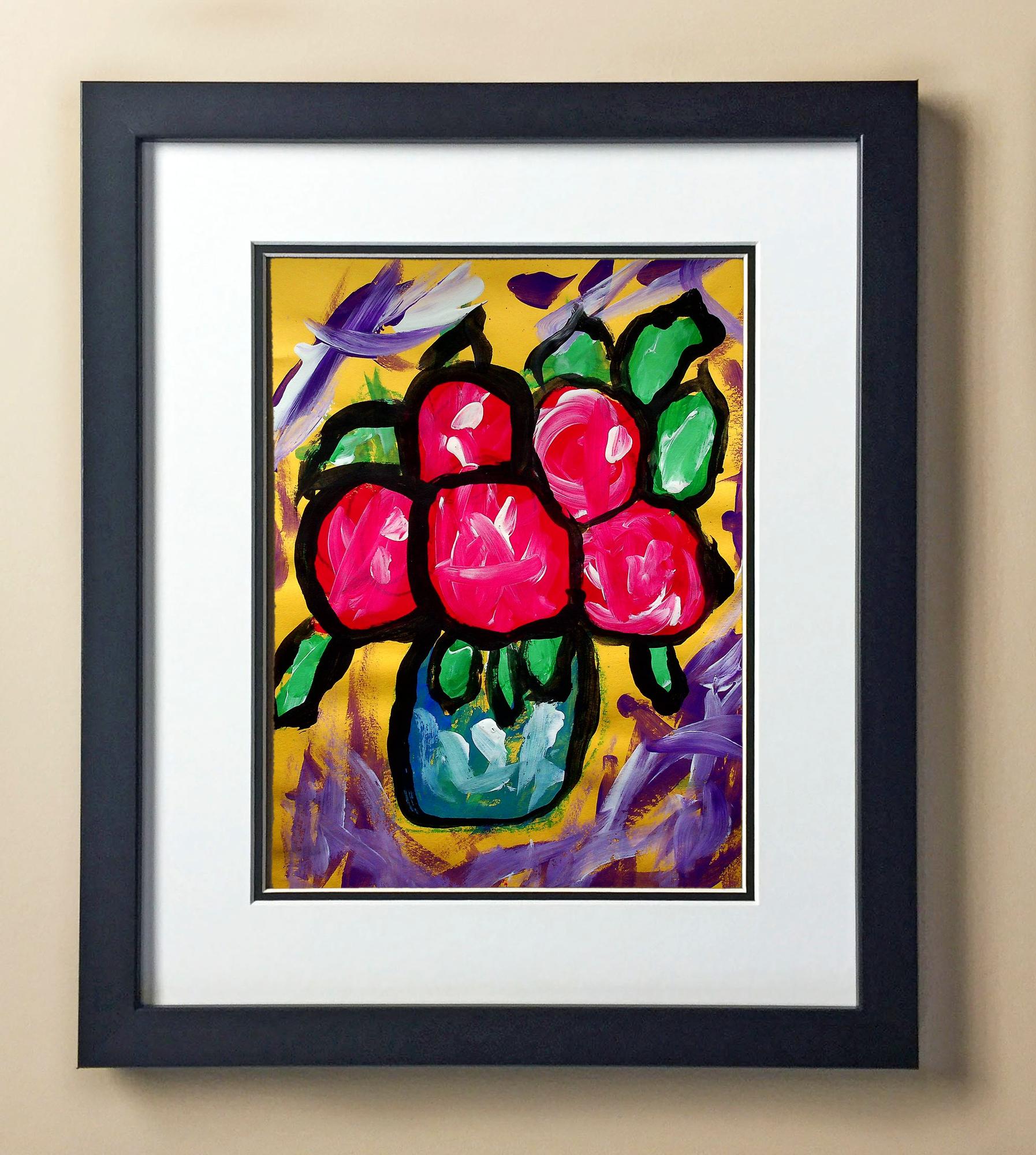 Included with the purchase is the Students Artwork, Frame, double matboard, shatter proof plexiglass, and a ready to hang backerboard with turnbuttons