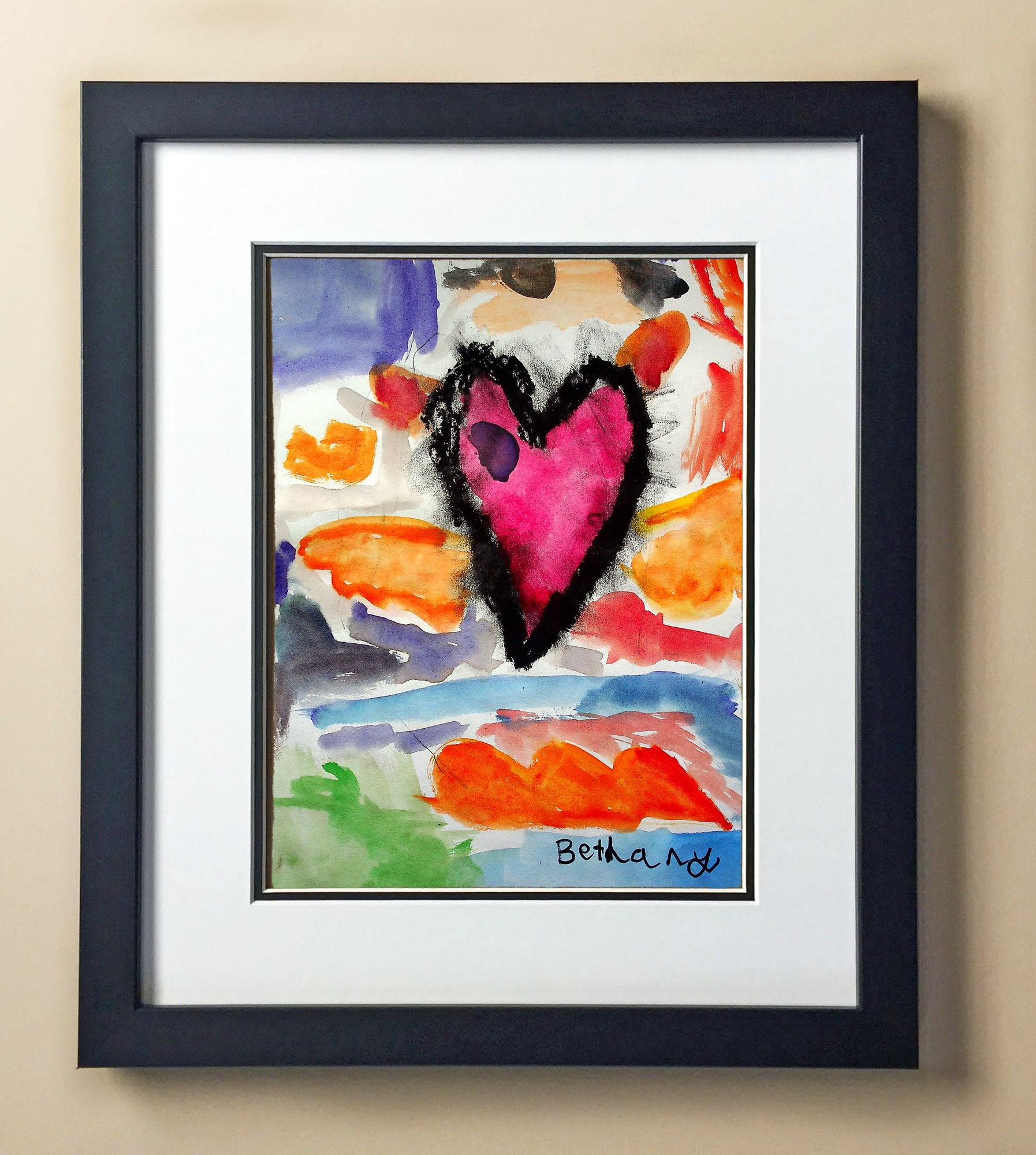 Included with the purchase is the Students Artwork, Frame, double matboard, shatter proof plexiglass, and a ready to hang backerboard with turnbuttons