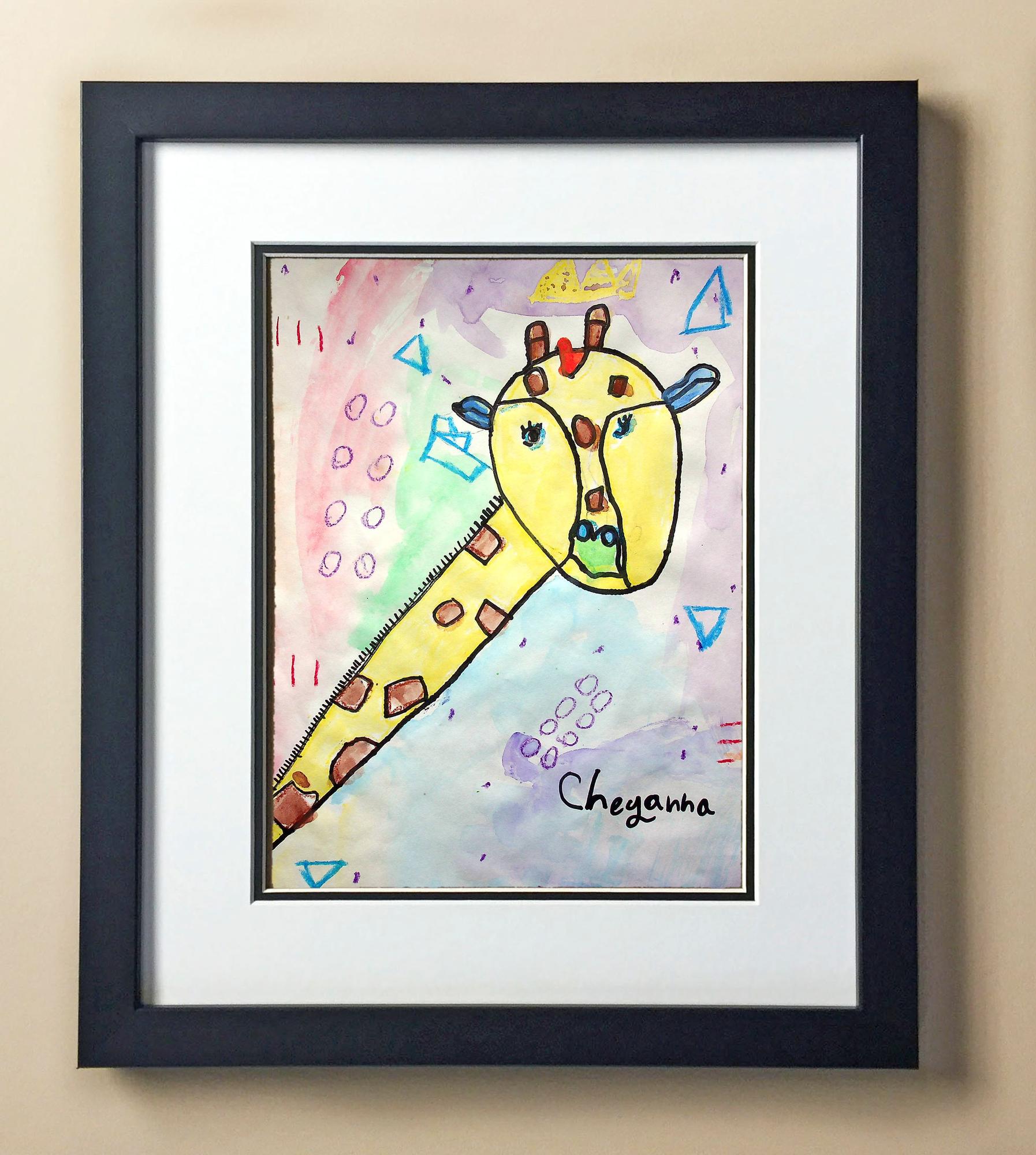 Included with the purchase is the Students Artwork, Frame, double matboard, shatter proof plexiglass, and a ready to hang backerboard with turnbuttons