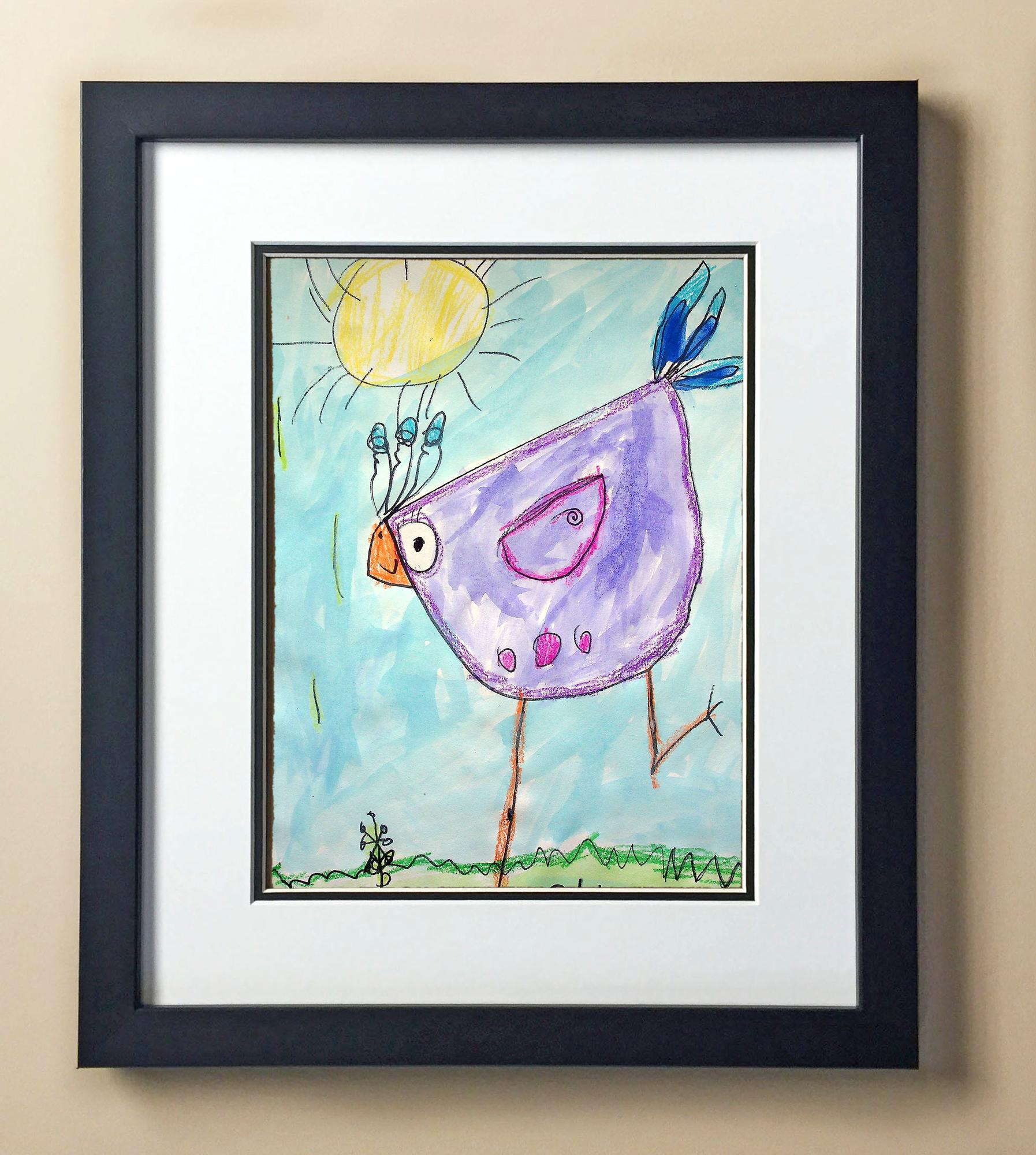 Included with the purchase is the Students Artwork, Frame, double matboard, shatter proof plexiglass, and a ready to hang backerboard with turnbuttons