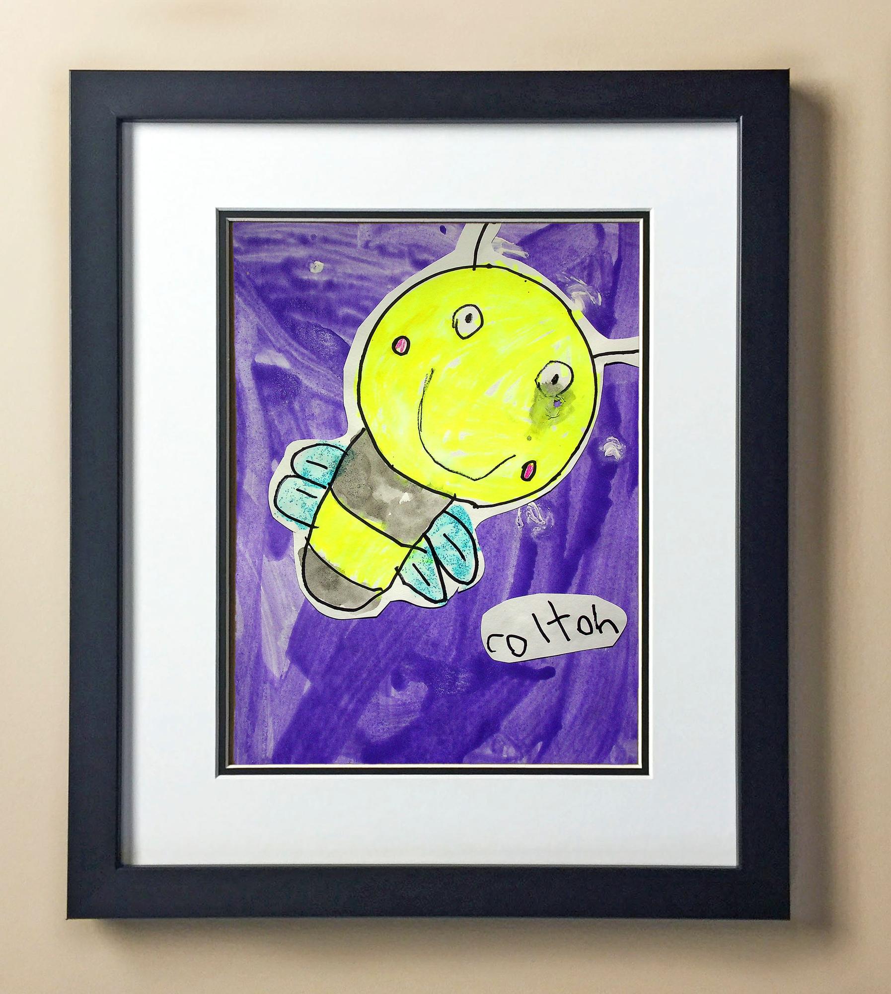 Included with the purchase is the Students Artwork, Frame, double matboard, shatter proof plexiglass, and a ready to hang backerboard with turnbuttons