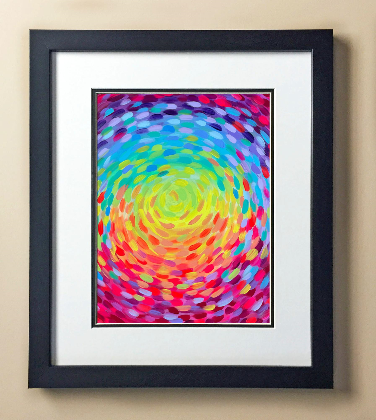 Included with the purchase is the Students Artwork, Frame, double matboard, shatter proof plexiglass, and a ready to hang backerboard with turnbuttons