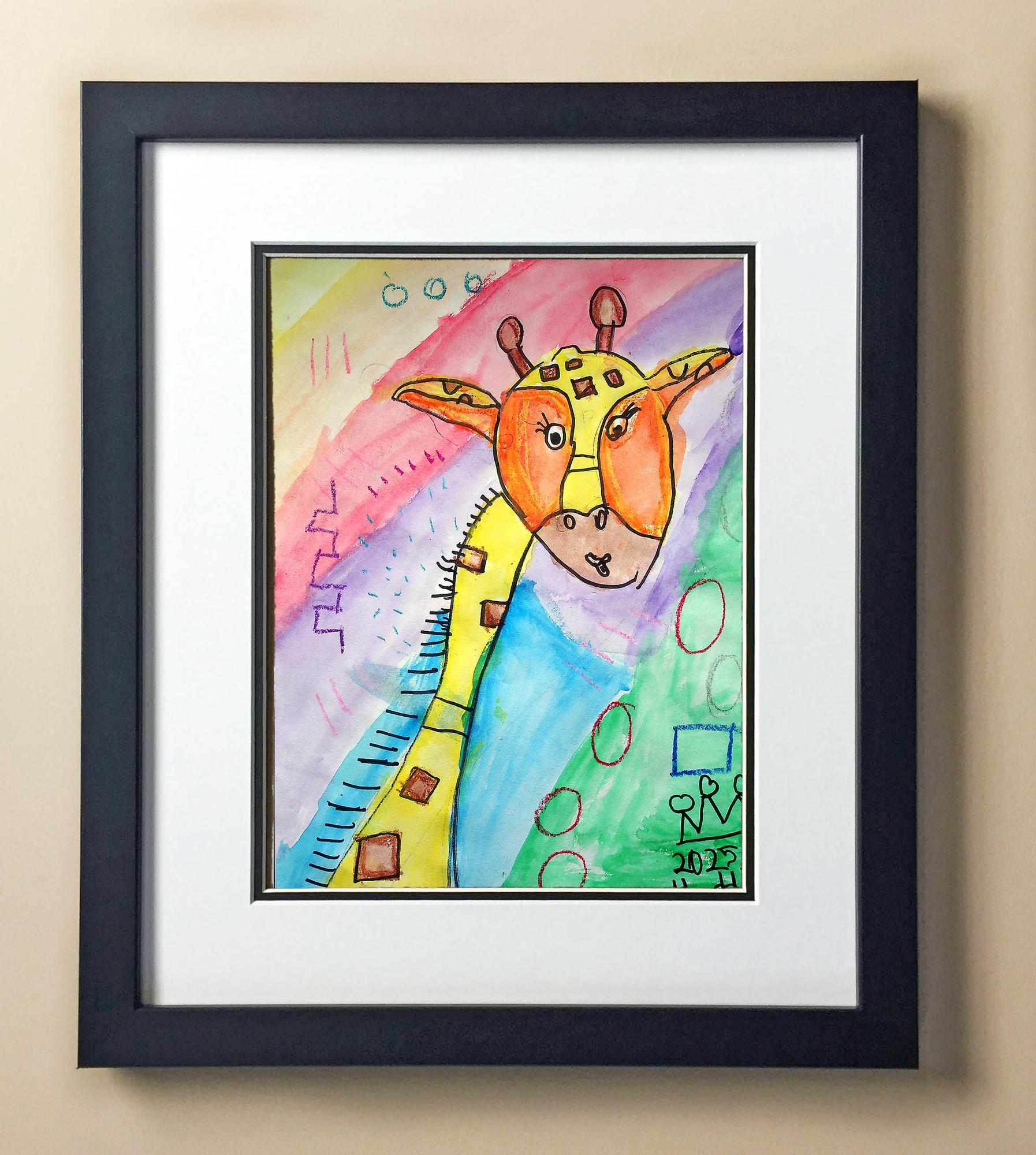 Included with the purchase is the Students Artwork, Frame, double matboard, shatter proof plexiglass, and a ready to hang backerboard with turnbuttons