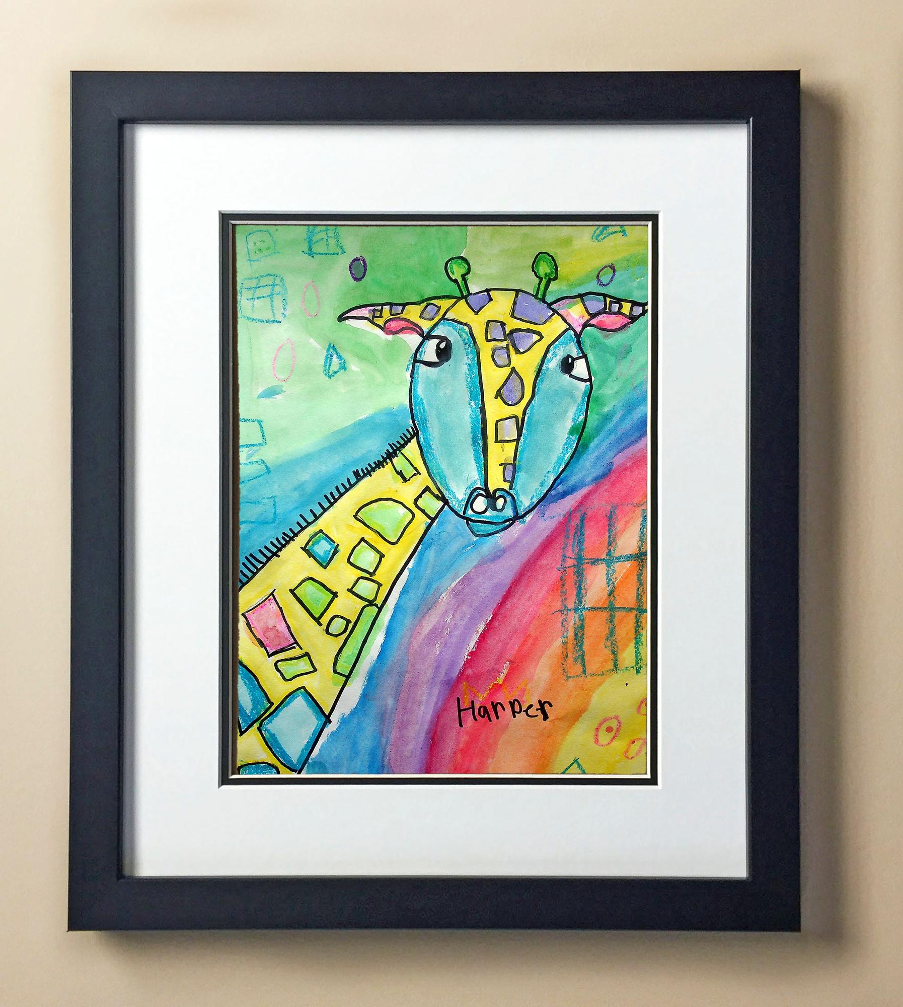 Included with the purchase is the Students Artwork, Frame, double matboard, shatter proof plexiglass, and a ready to hang backerboard with turnbuttons