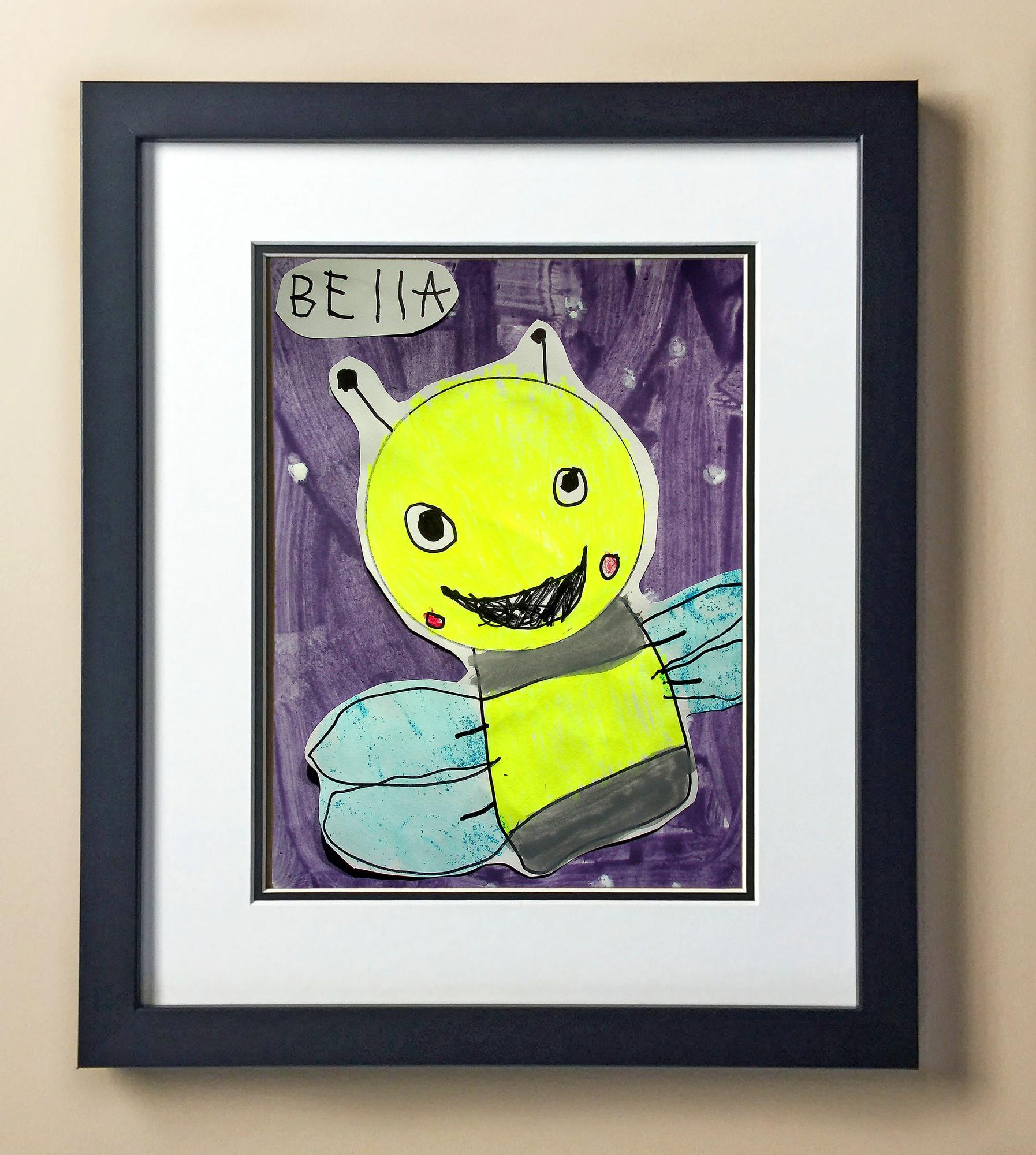 Included with the purchase is the Students Artwork, Frame, double matboard, shatter proof plexiglass, and a ready to hang backerboard with turnbuttons