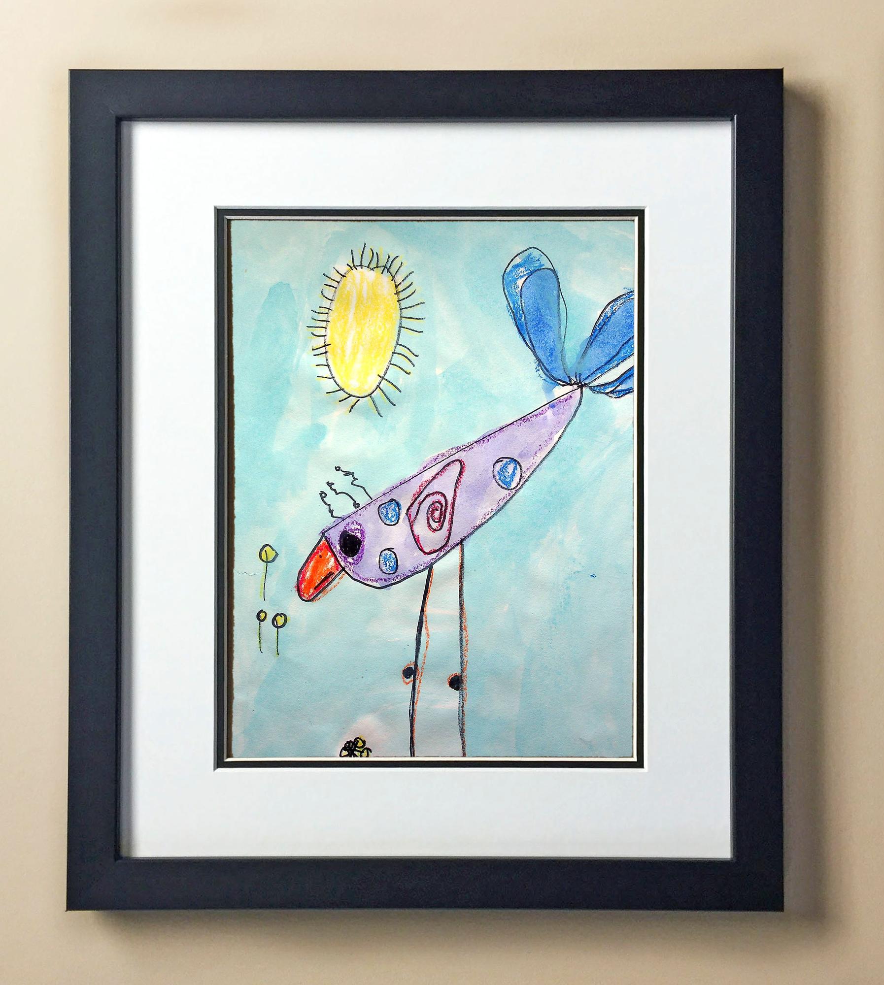 Included with the purchase is the Students Artwork, Frame, double matboard, shatter proof plexiglass, and a ready to hang backerboard with turnbuttons
