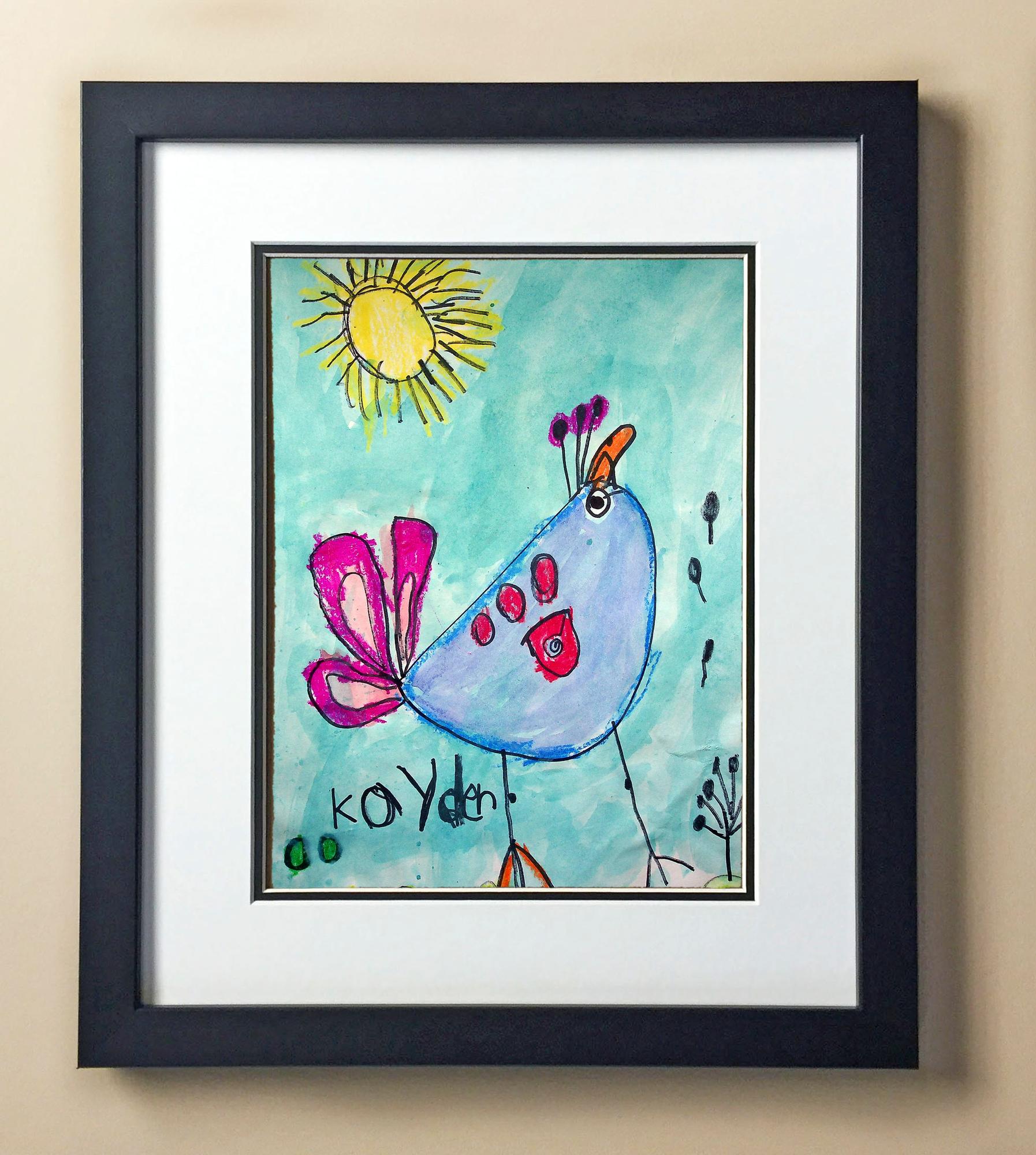Included with the purchase is the Students Artwork, Frame, double matboard, shatter proof plexiglass, and a ready to hang backerboard with turnbuttons
