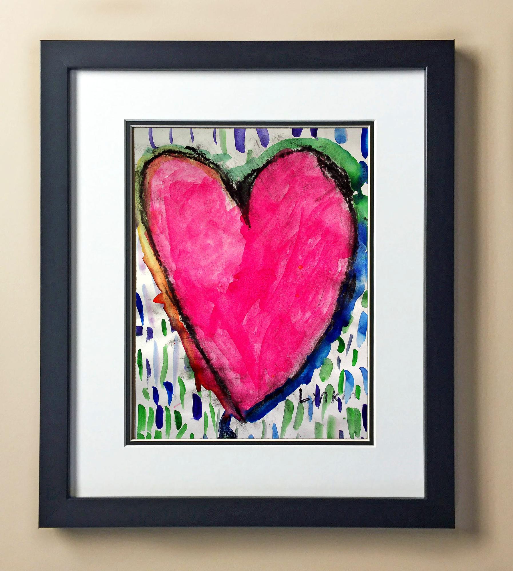 Included with the purchase is the Students Artwork, Frame, double matboard, shatter proof plexiglass, and a ready to hang backerboard with turnbuttons