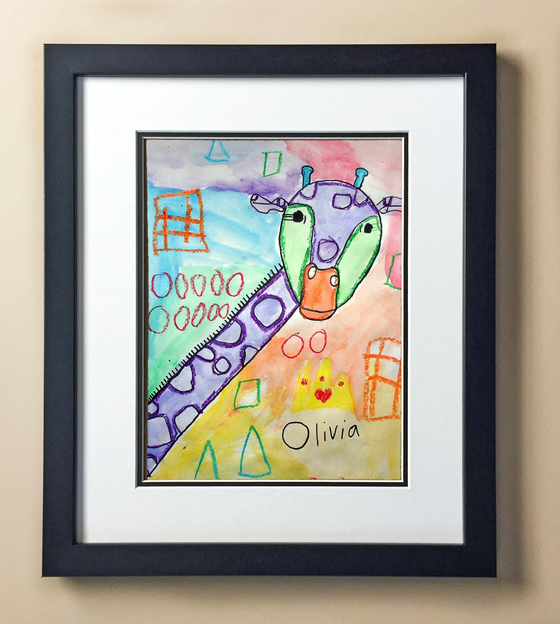 Included with the purchase is the Students Artwork, Frame, double matboard, shatter proof plexiglass, and a ready to hang backerboard with turnbuttons