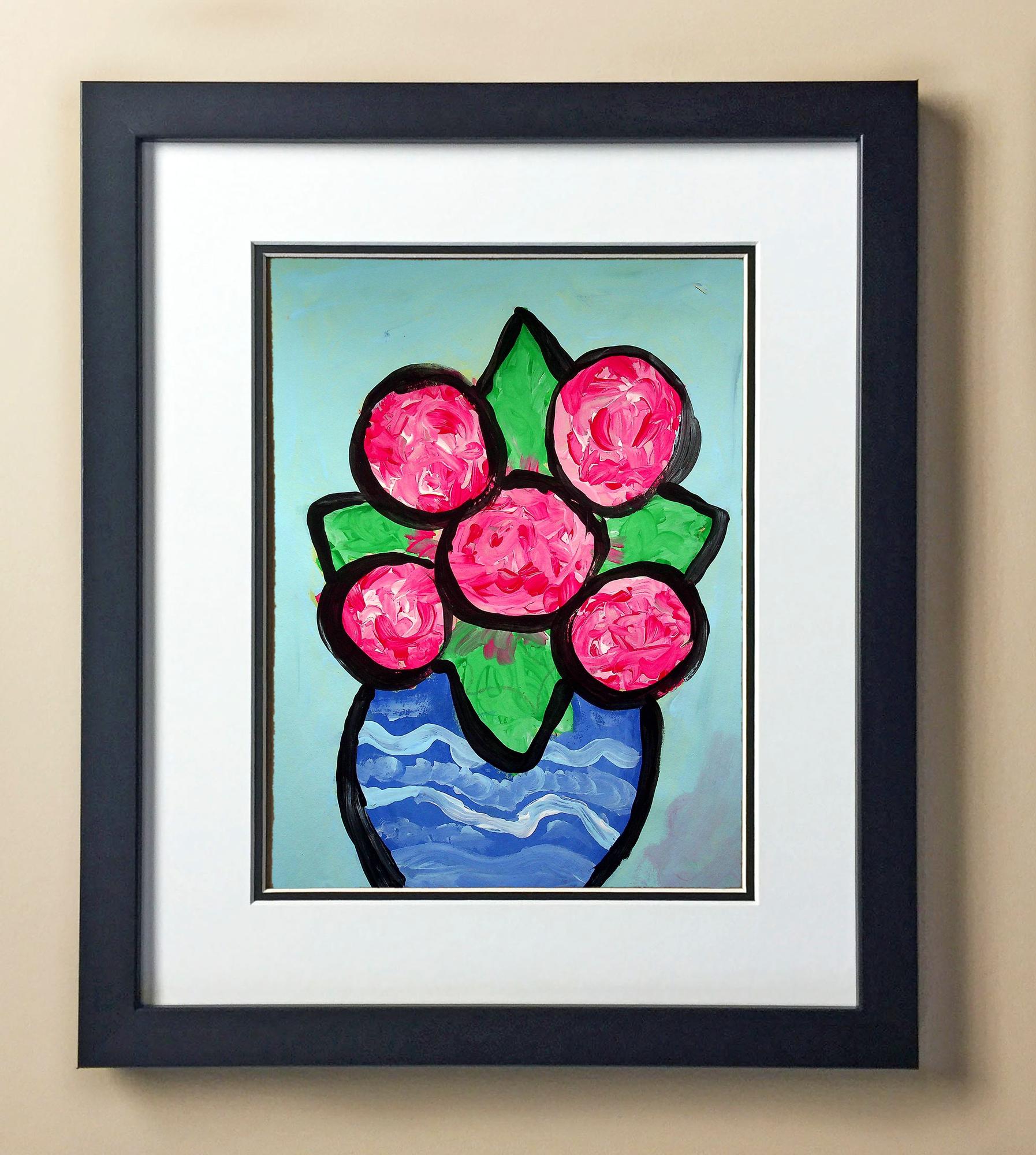 Included with the purchase is the Students Artwork, Frame, double matboard, shatter proof plexiglass, and a ready to hang backerboard with turnbuttons