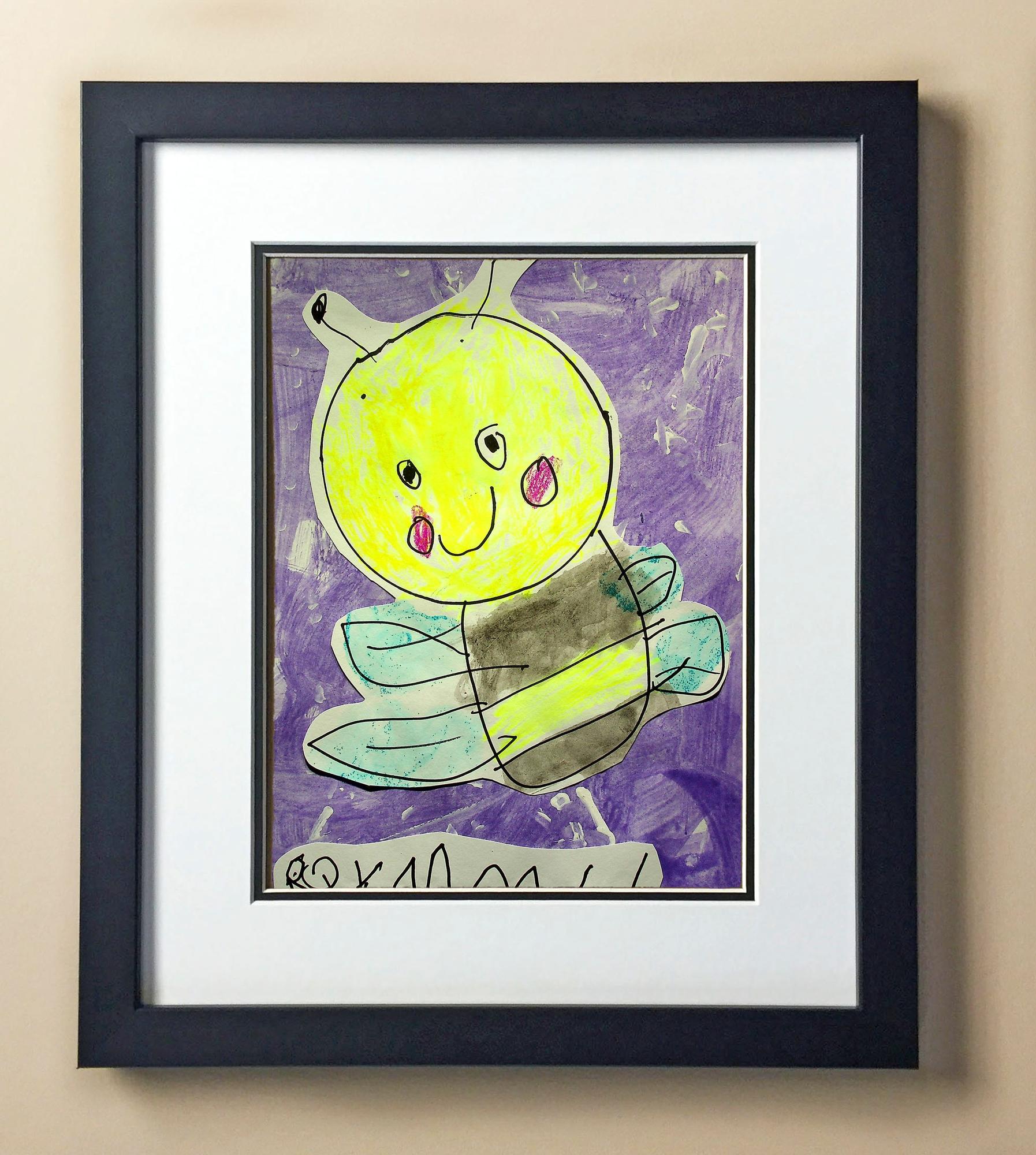 Included with the purchase is the Students Artwork, Frame, double matboard, shatter proof plexiglass, and a ready to hang backerboard with turnbuttons