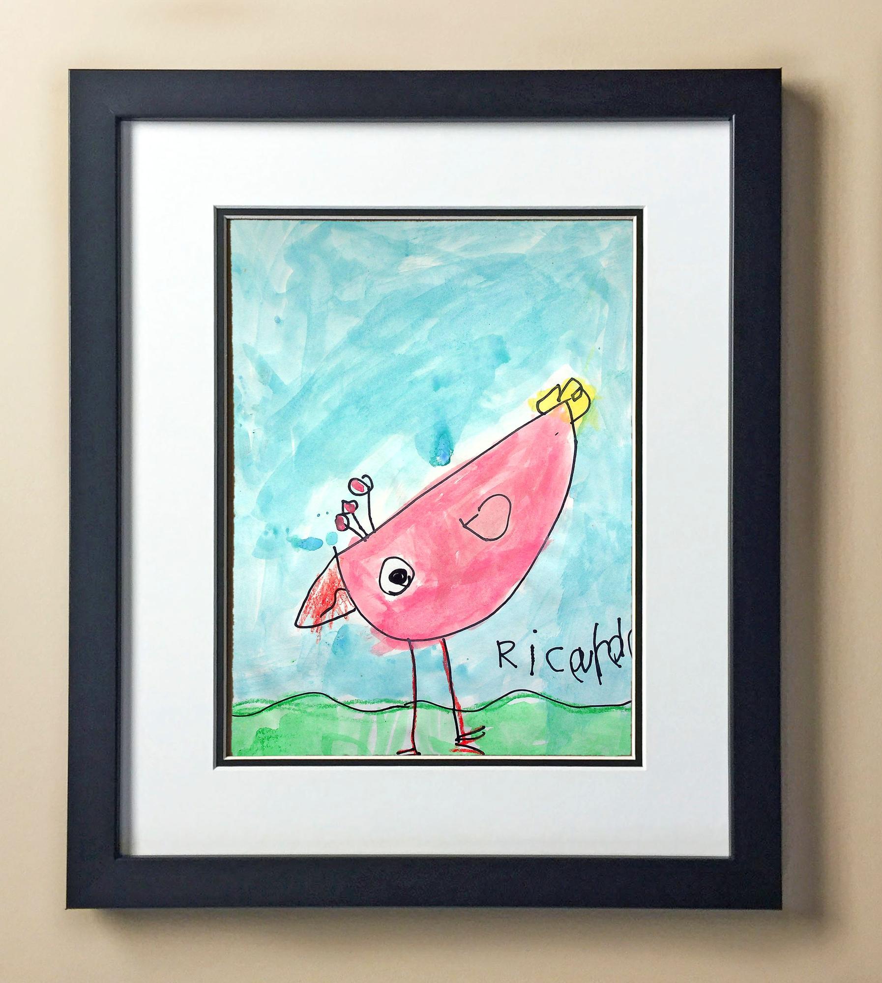 Included with the purchase is the Students Artwork, Frame, double matboard, shatter proof plexiglass, and a ready to hang backerboard with turnbuttons