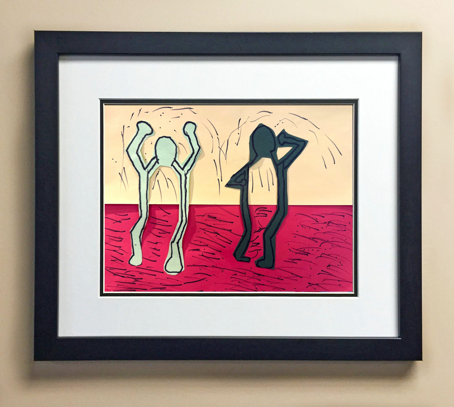 Included with the purchase is the Students Artwork, Frame, double matboard, shatter proof plexiglass, and a ready to hang backerboard with turnbuttons