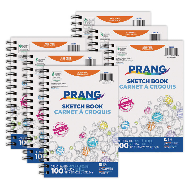 Sketch Book, Lightweight, 9" x 6", 100 Sheets, Pack of 6 Product Information