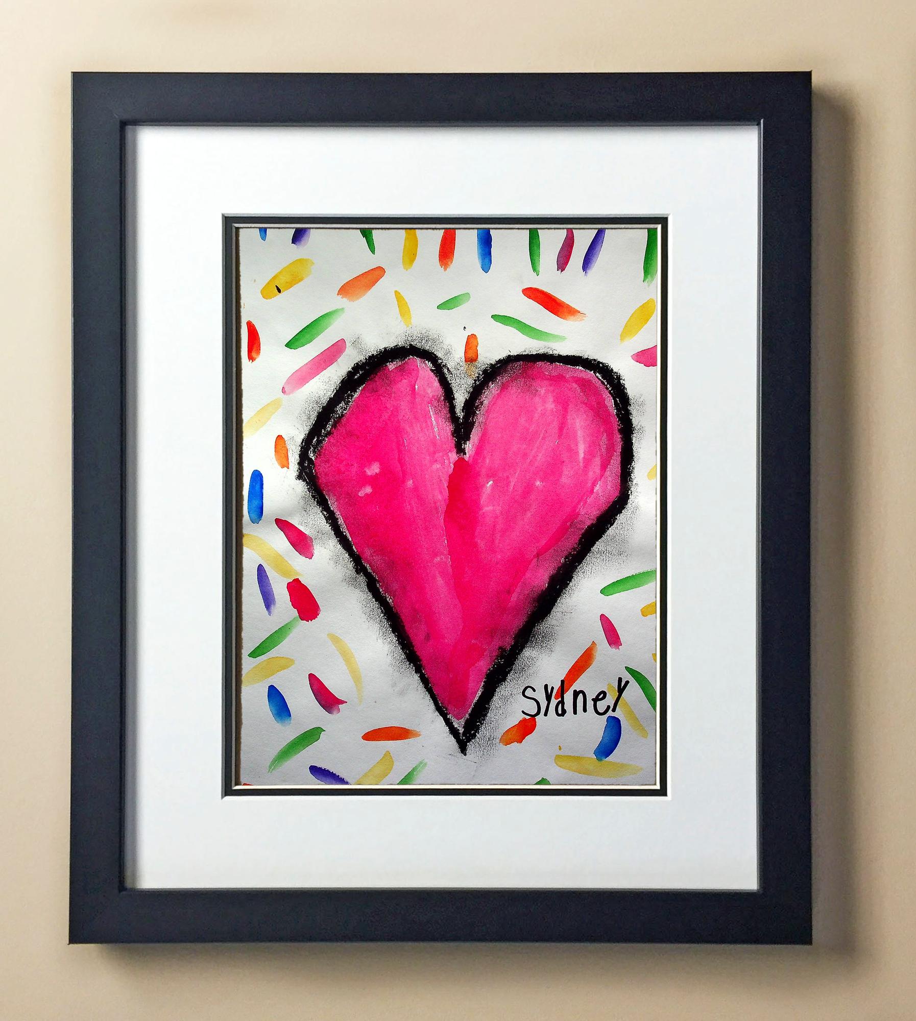 Included with the purchase is the Students Artwork, Frame, double matboard, shatter proof plexiglass, and a ready to hang backerboard with turnbuttons