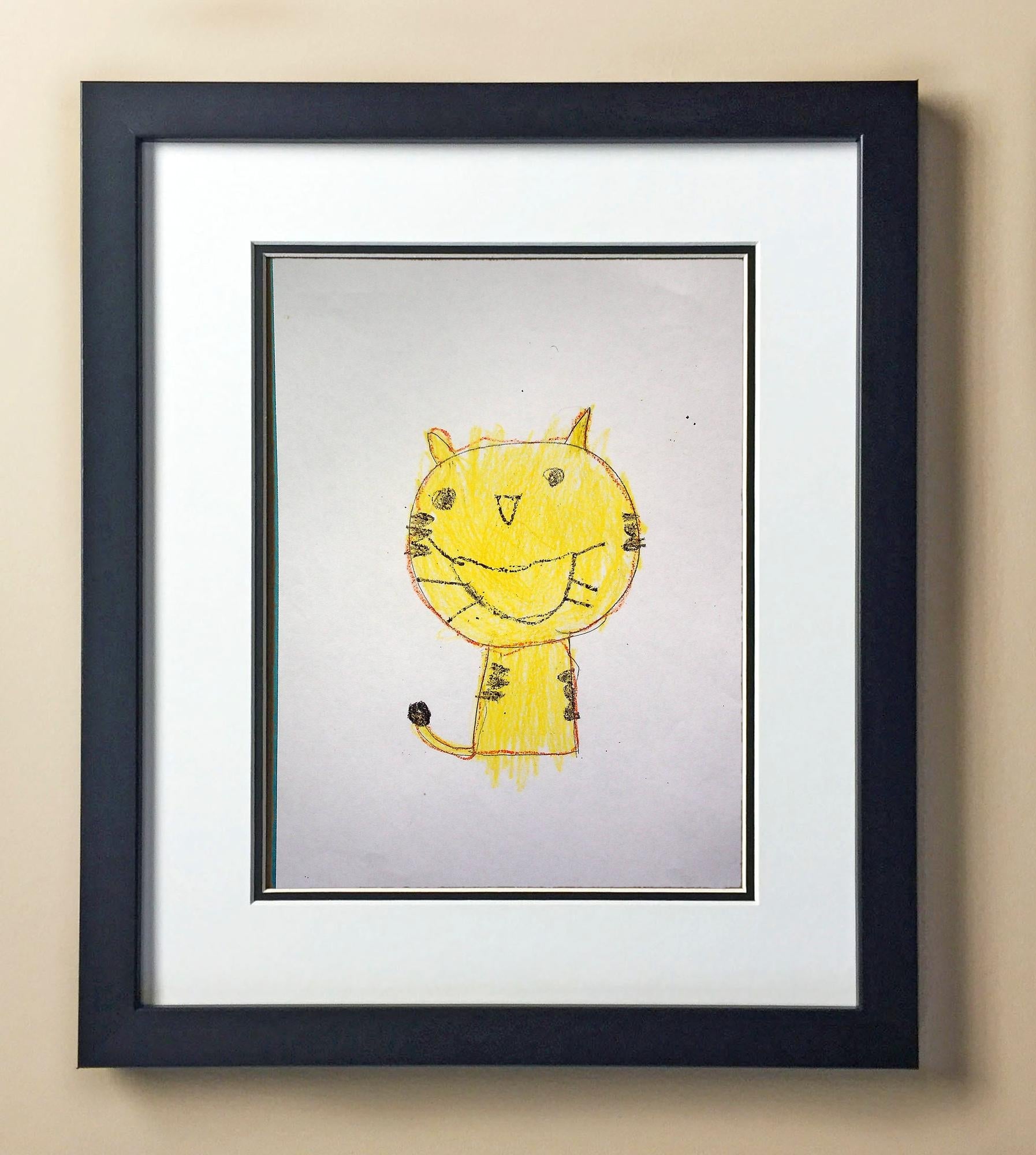 Included with the purchase is the Students Artwork, Frame, double matboard, shatter proof plexiglass, and a ready to hang backerboard with turnbuttons