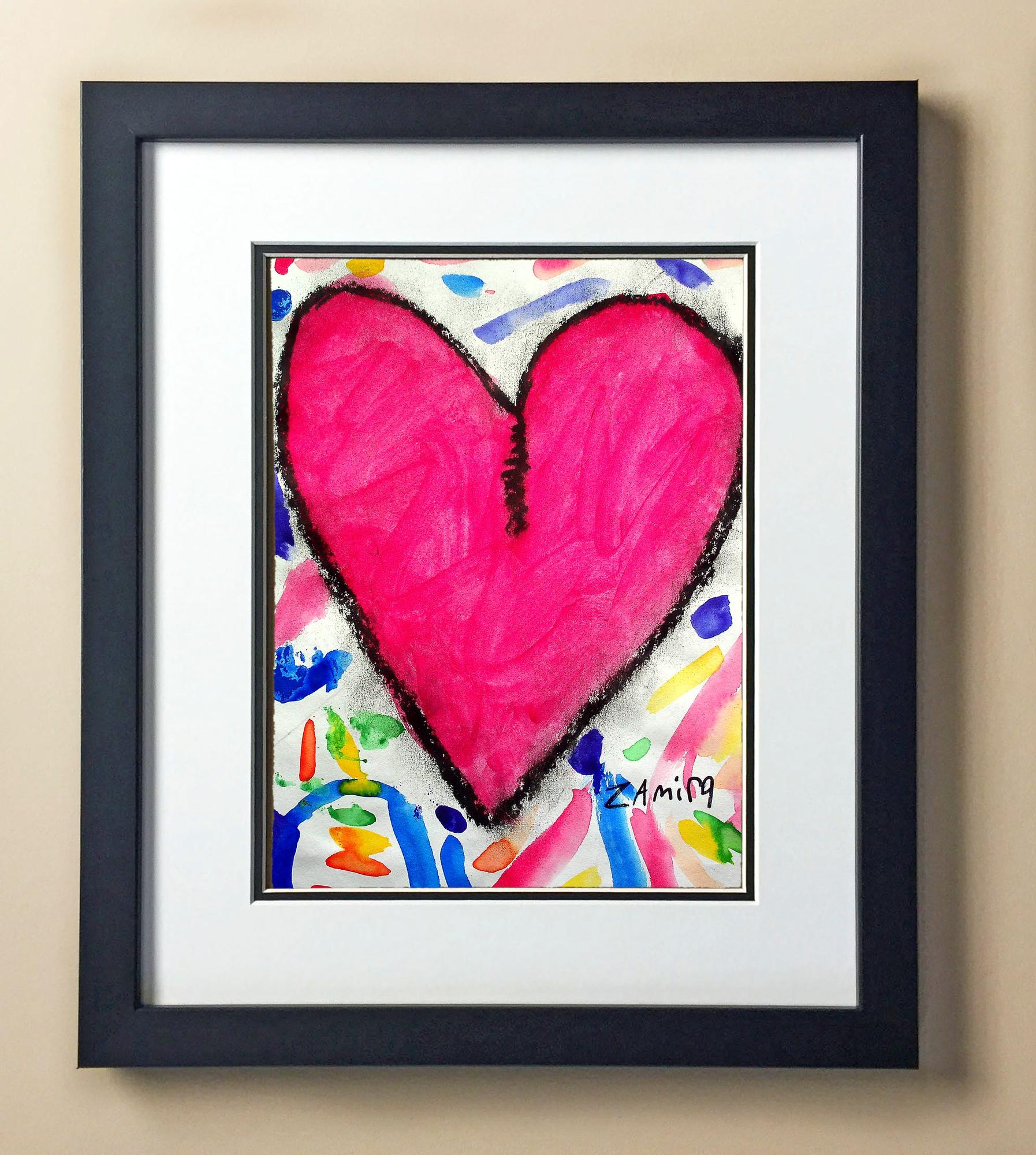 Included with the purchase is the Students Artwork, Frame, double matboard, shatter proof plexiglass, and a ready to hang backerboard with turnbuttons